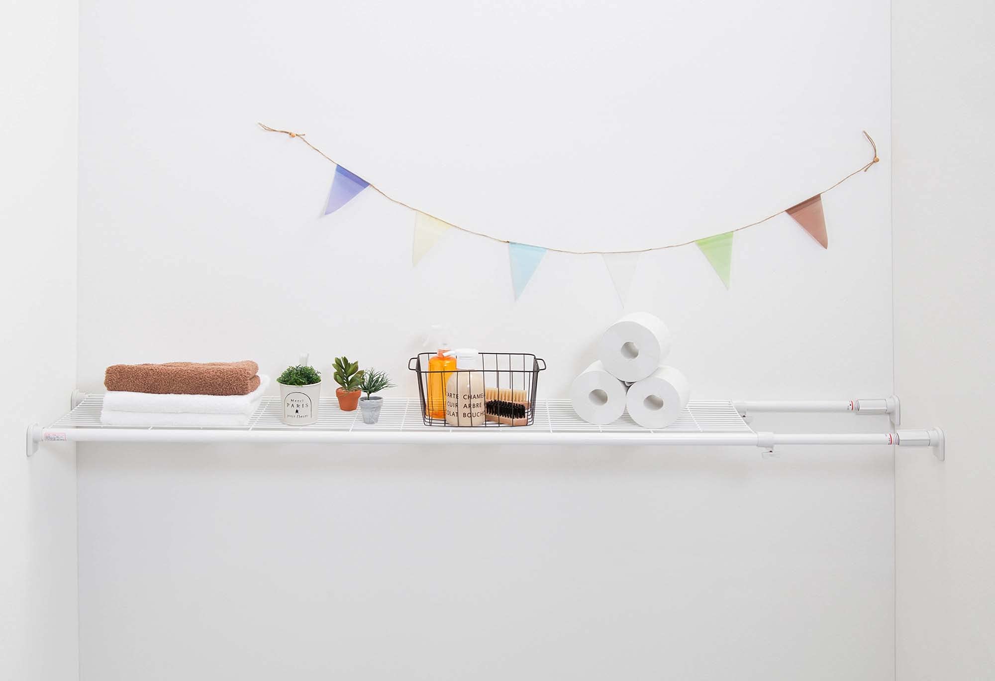 ピッチの細かいメッシュ棚で小物も載せやすいタイプの突っ張り棚です。