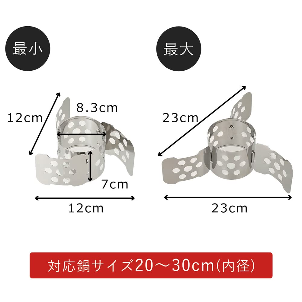 サイズ(約):広げた時/幅23×奥行23×高さ7cm、鍋適応サイズ/内径20~30cm