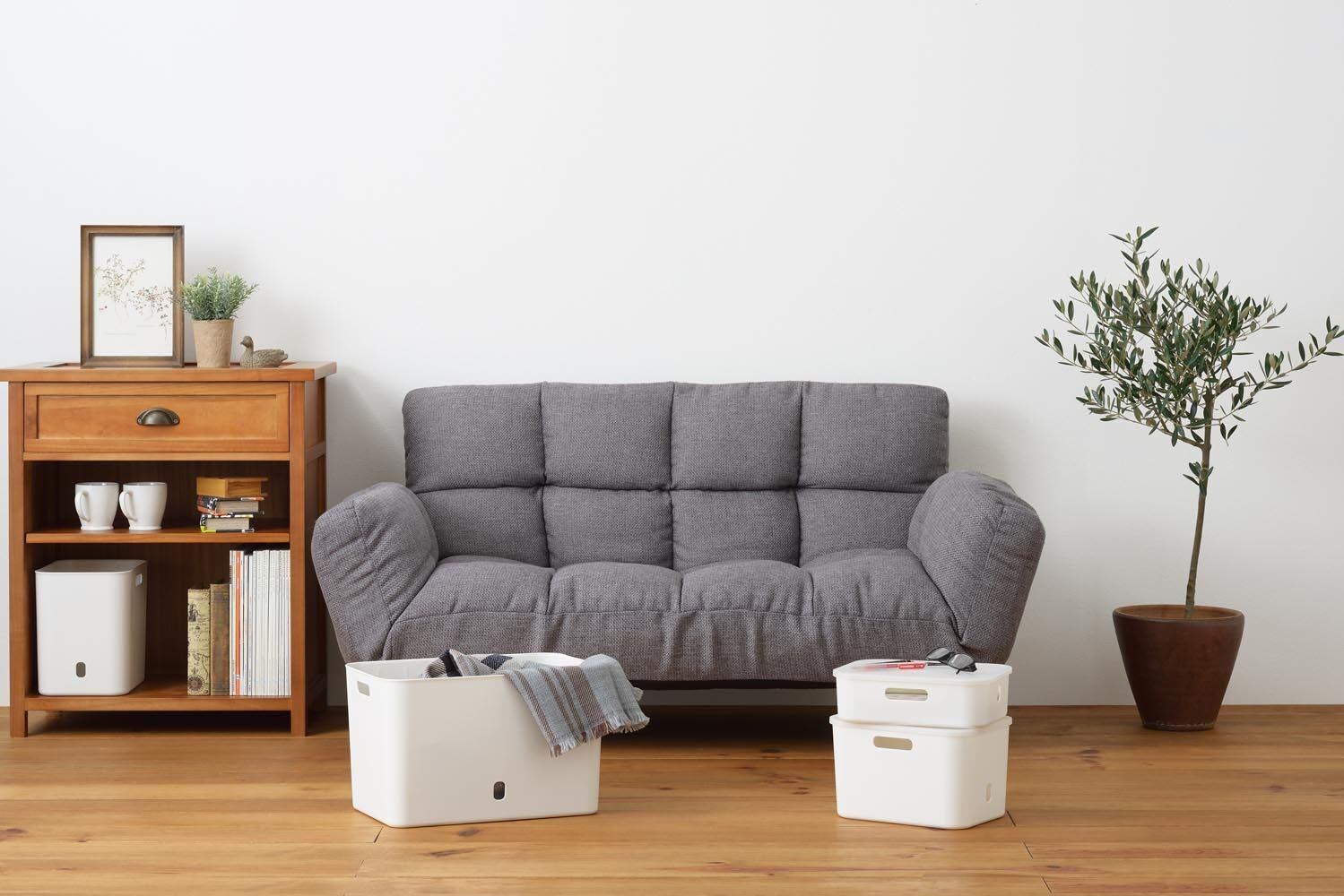 中身が見えないから、ぽいぽい入れてすっきりとしたお部屋に。