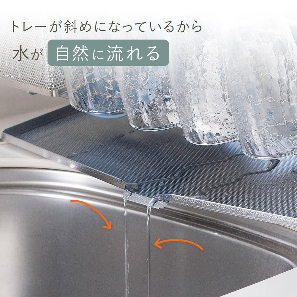 下村企販 お皿が立てられる 水切りラック 3~4人用 【日本製】 シンク上 水垢が目立ちにくいトレー 様々な食器に対応 6連グラスホルダー・箸ポケット付き スリム 台所 水切りかご ステンレス 燕三条 41495