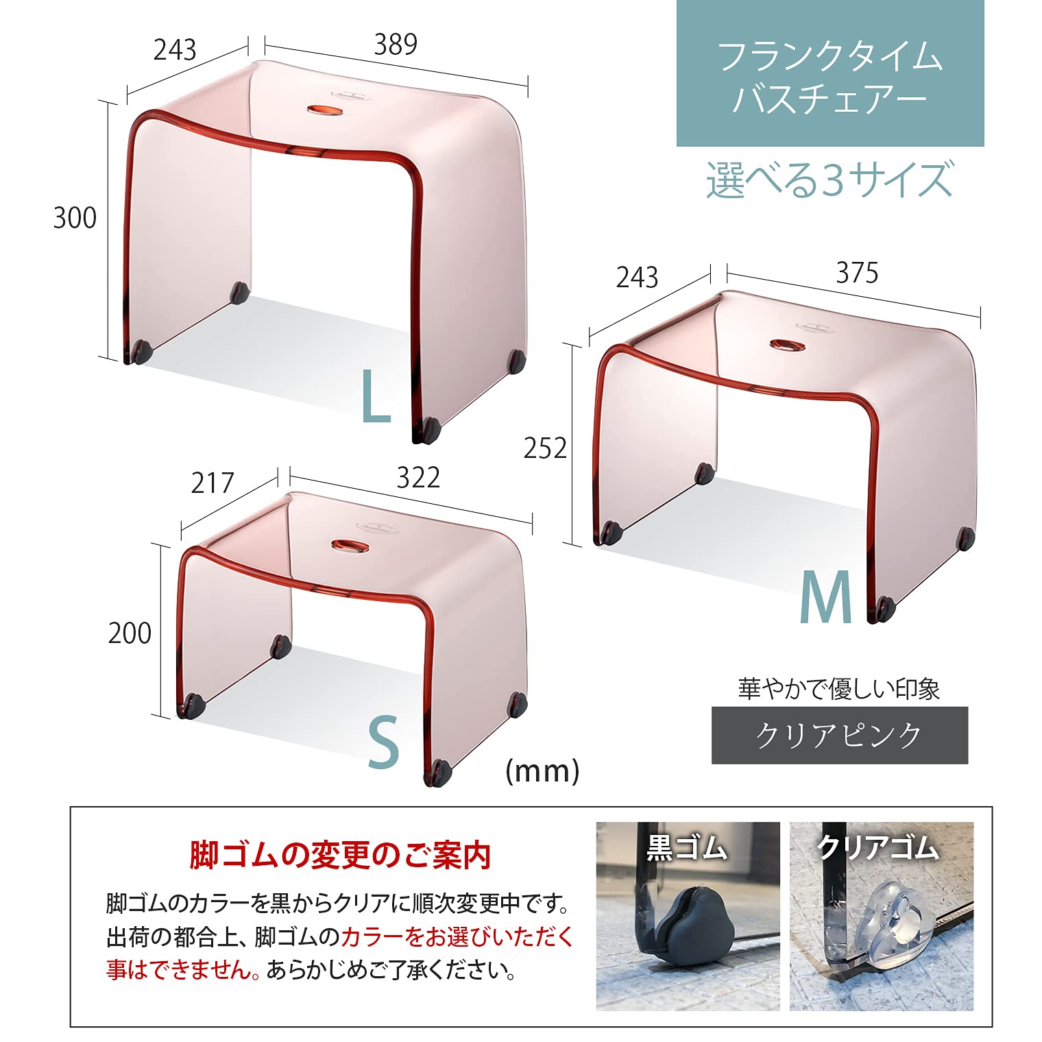 リス 風呂椅子 フランクタイム クリアピンク バスチェアーL 高さ 30cm