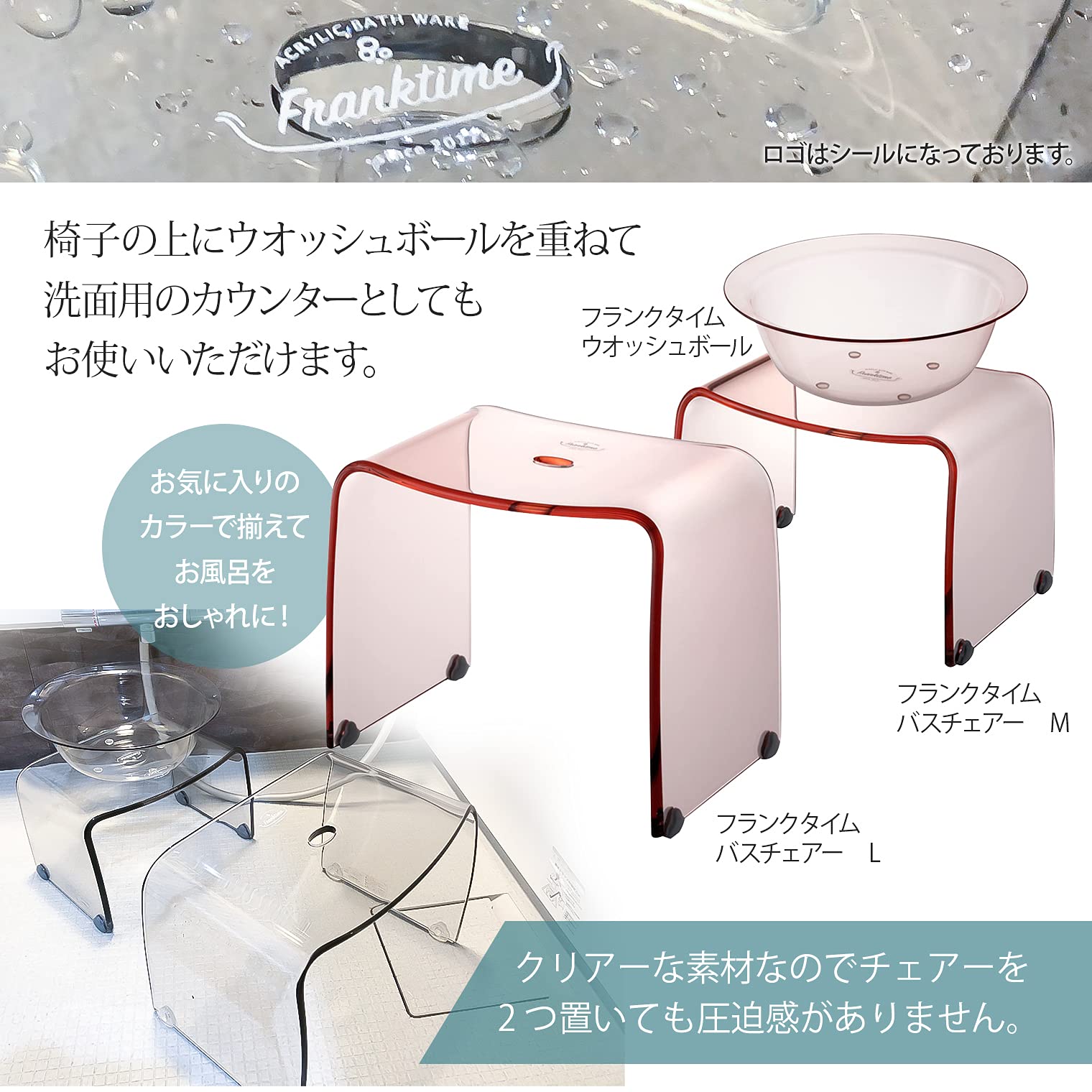 【大特価セール】リス 風呂椅子 フランクタイム クリアピンク バスチェアーL 高さ 30cm