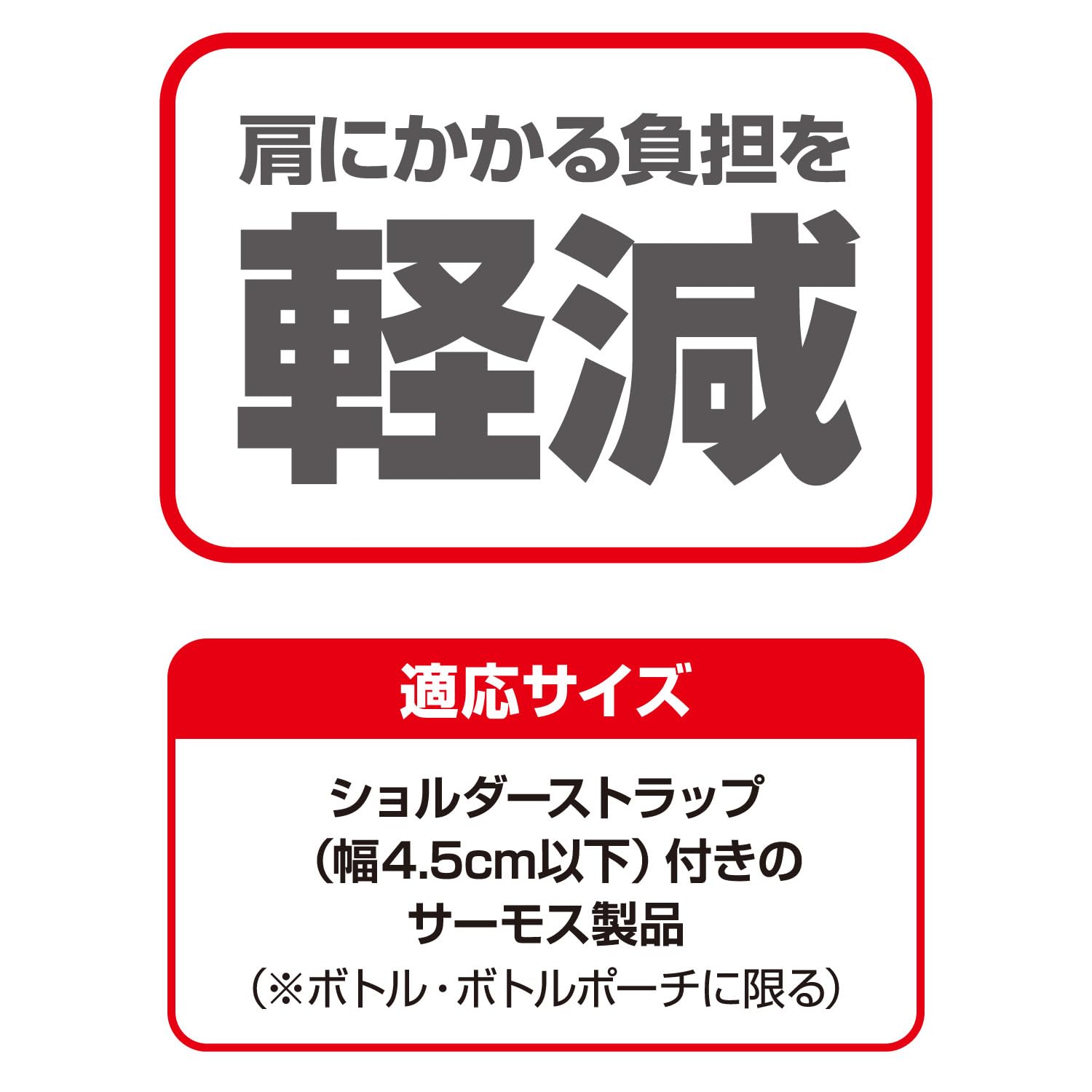 適応サイズ:ショルダーストラップ(幅4.5cm以下)付きのサーモス製品 ※ボトル・ボトルポーチに限る