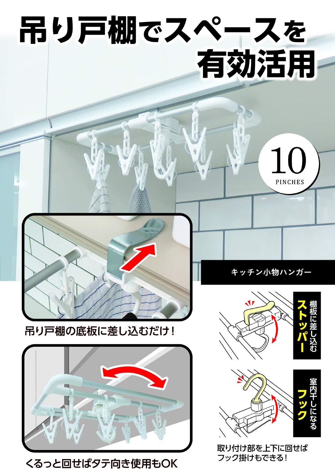 【限定セール】東和産業 LD キッチン小物ハンガー ホワイト 約幅33.2×高さ13×奥行13.5cm 吊り戸棚に差し込むだけで取り付け簡単