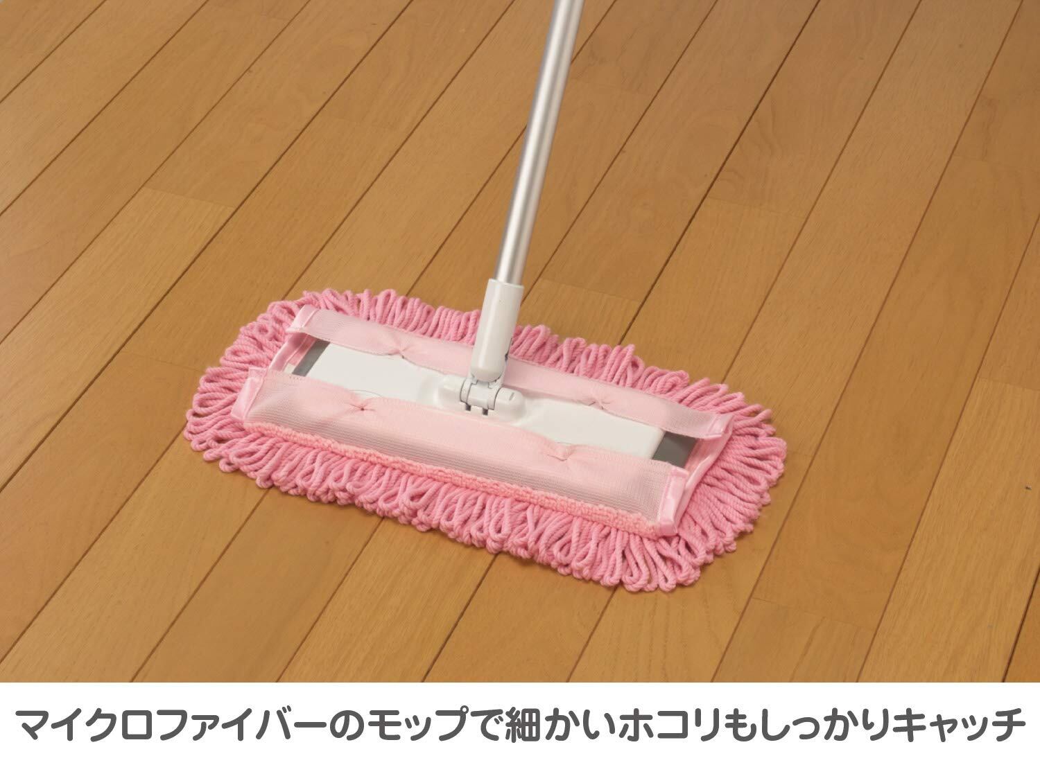 マイクロファイバーのモップで細かなほこりから髪の毛までしっかりキャッチ