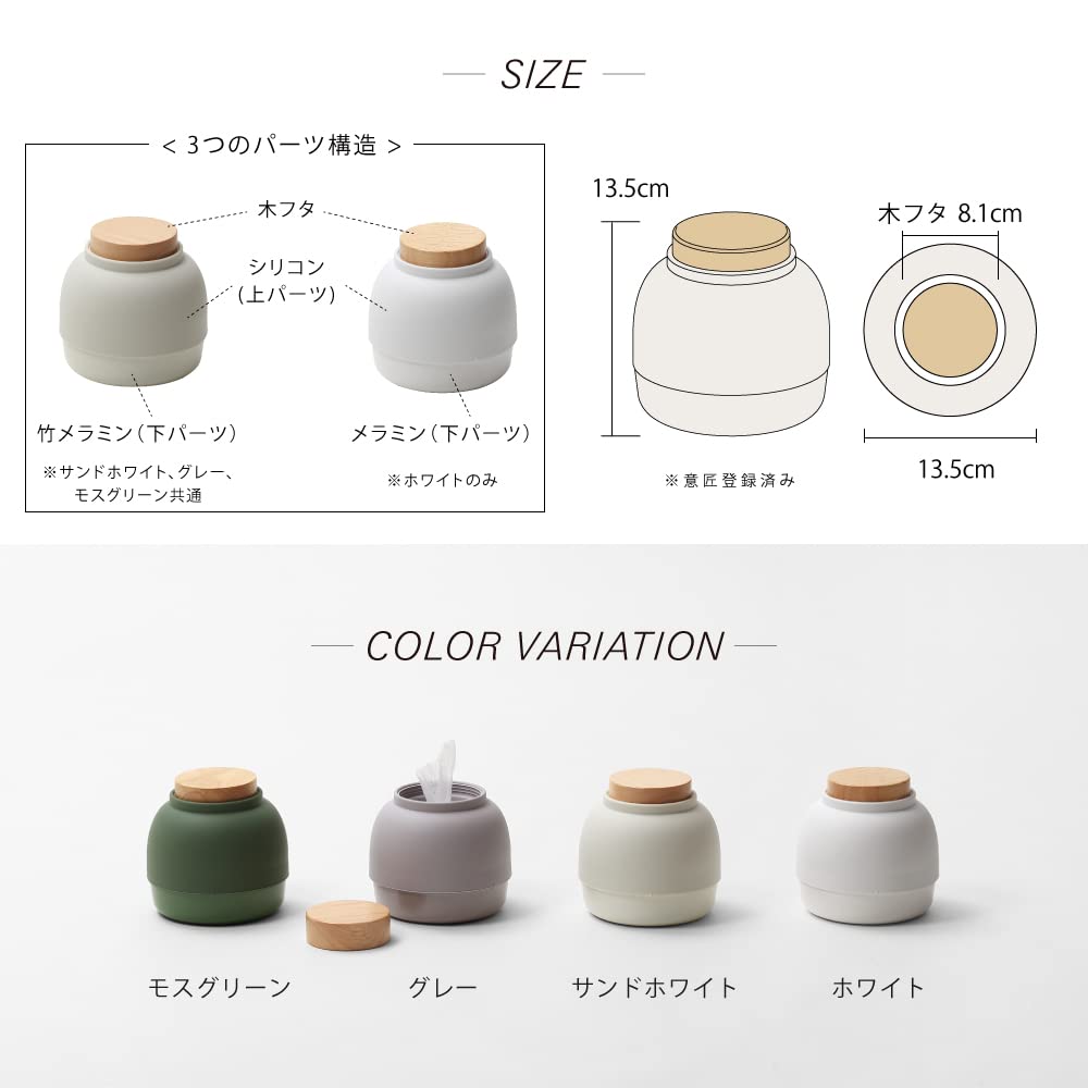 大判ウェットシート収納の新発想。 インテリアに馴染み、そこにあるだけで穏やかなやさしい空気感が生まれます。 赤ちゃんのおしりふきもコンパクトに収納できます。 ジグザグスリットは、シートの取り出しを容易にします。