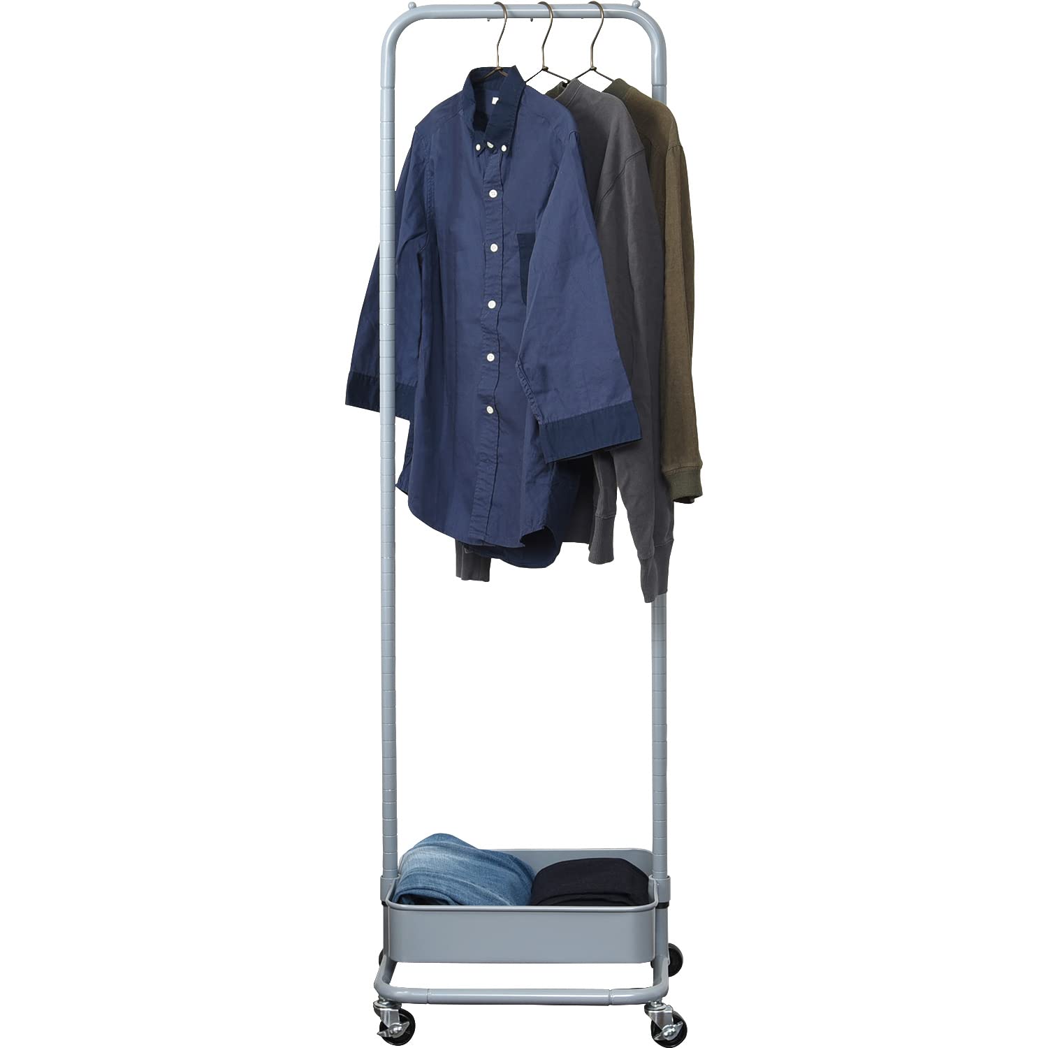 高さが変えられる。バスケット付きハンガーラック