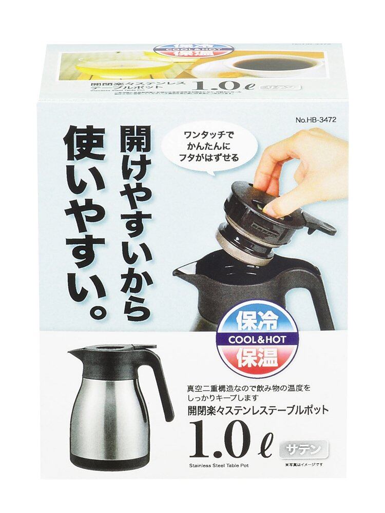 パール金属 ポット 卓上ポット テーブルポット 1.0L ステンレス製 保温 保冷 サテン 開閉楽々 HB-3472