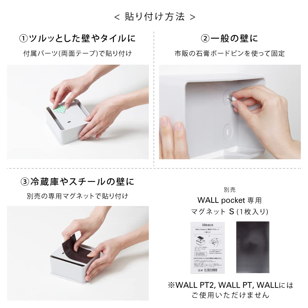 【限定特価】ideaco(イデアコ) どんな壁にも貼れる 収納ケース アッシュグレー WALL pocket S (ウォールポケットS)