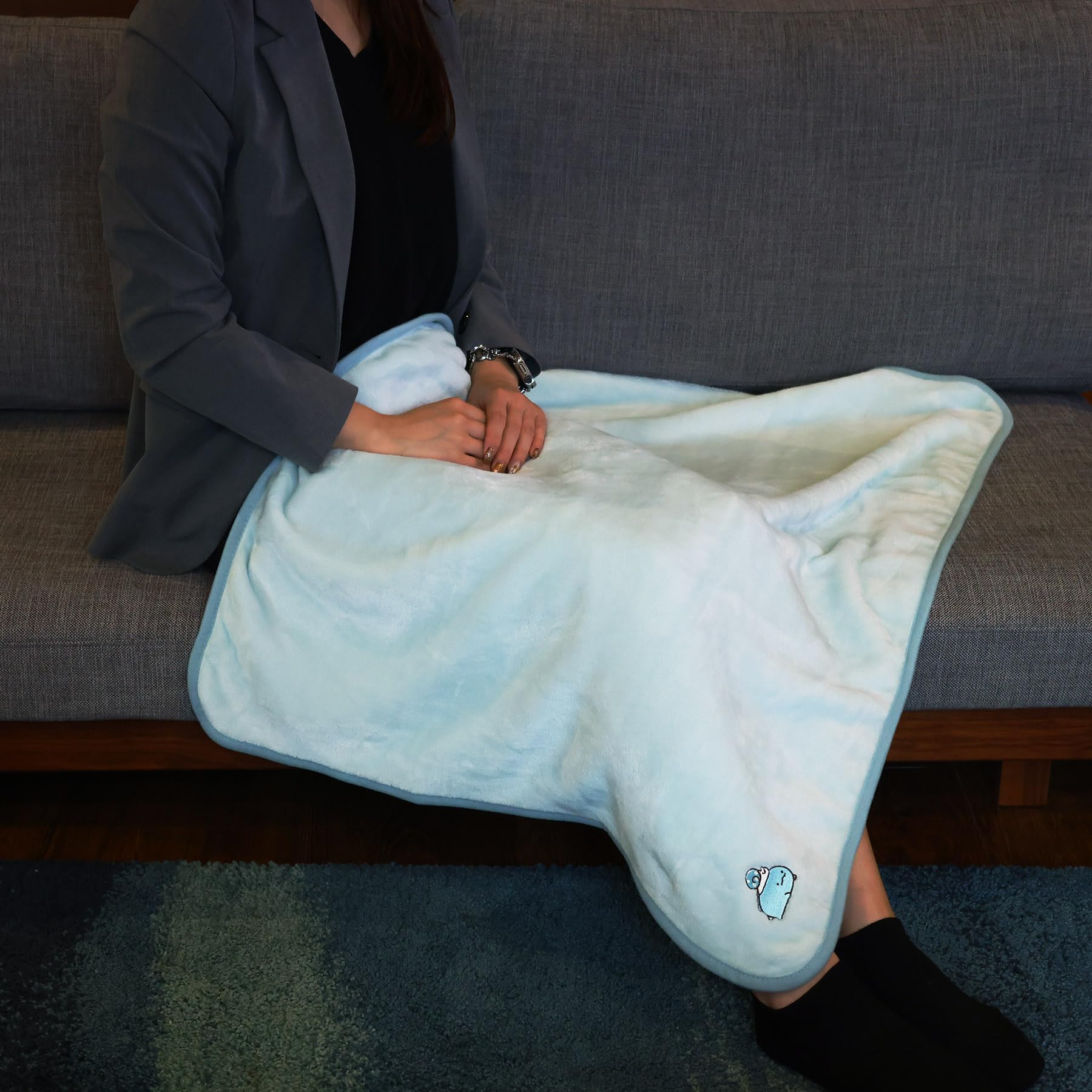 ひざ掛けの左下にはキャラクターの刺繍付きです。
