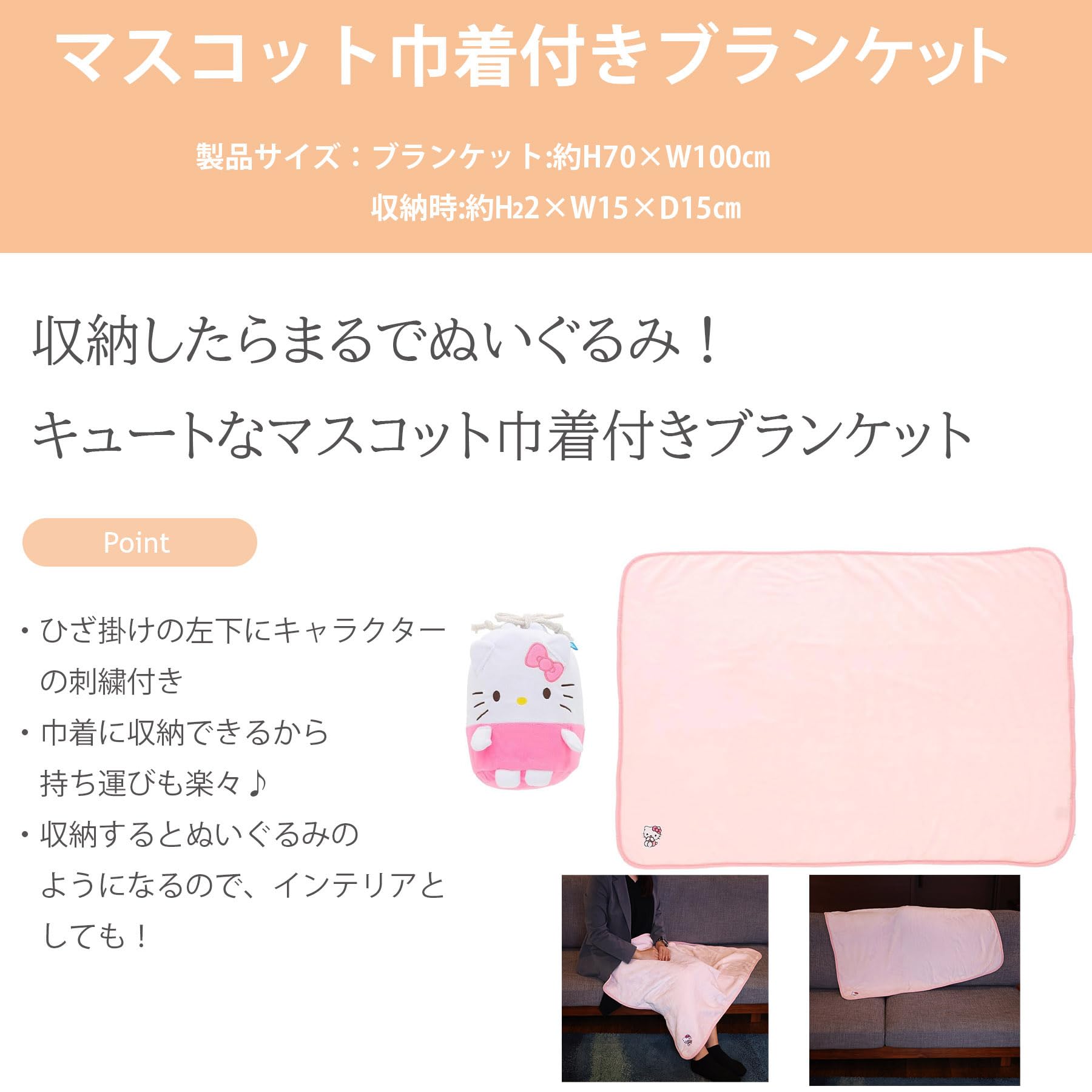 サイズ:ブランケット:約H70×W100cm 収納時:約H22×W15×D15cm(足・引き手部分含めず) / 生産国:中国