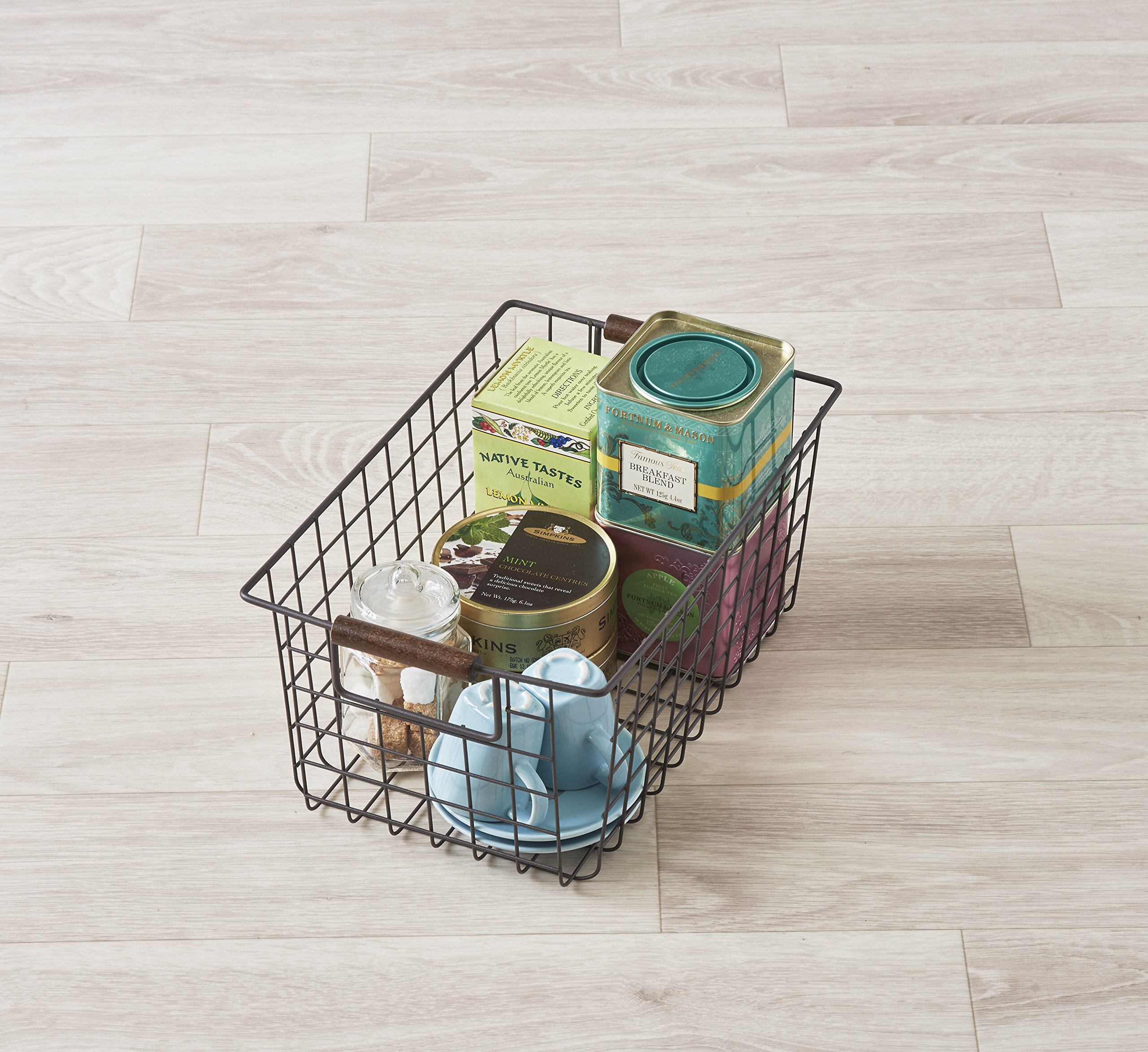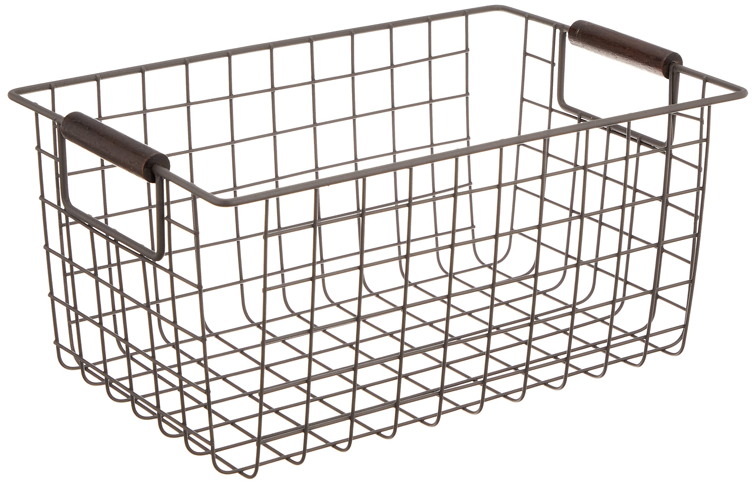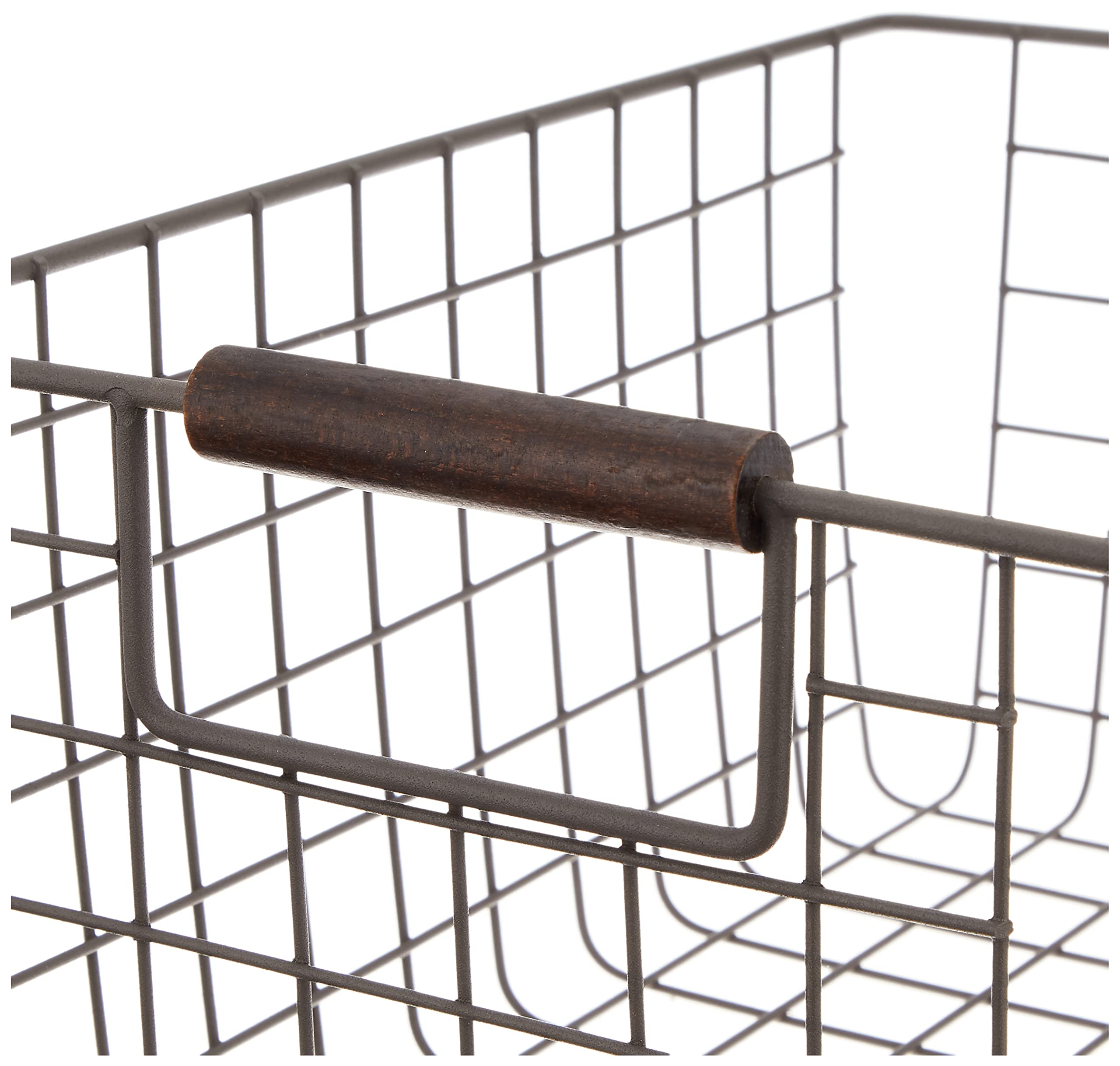 パール金属 バスケット ブラウン Sサイズ ワイヤーバスケット 木柄 N-8317