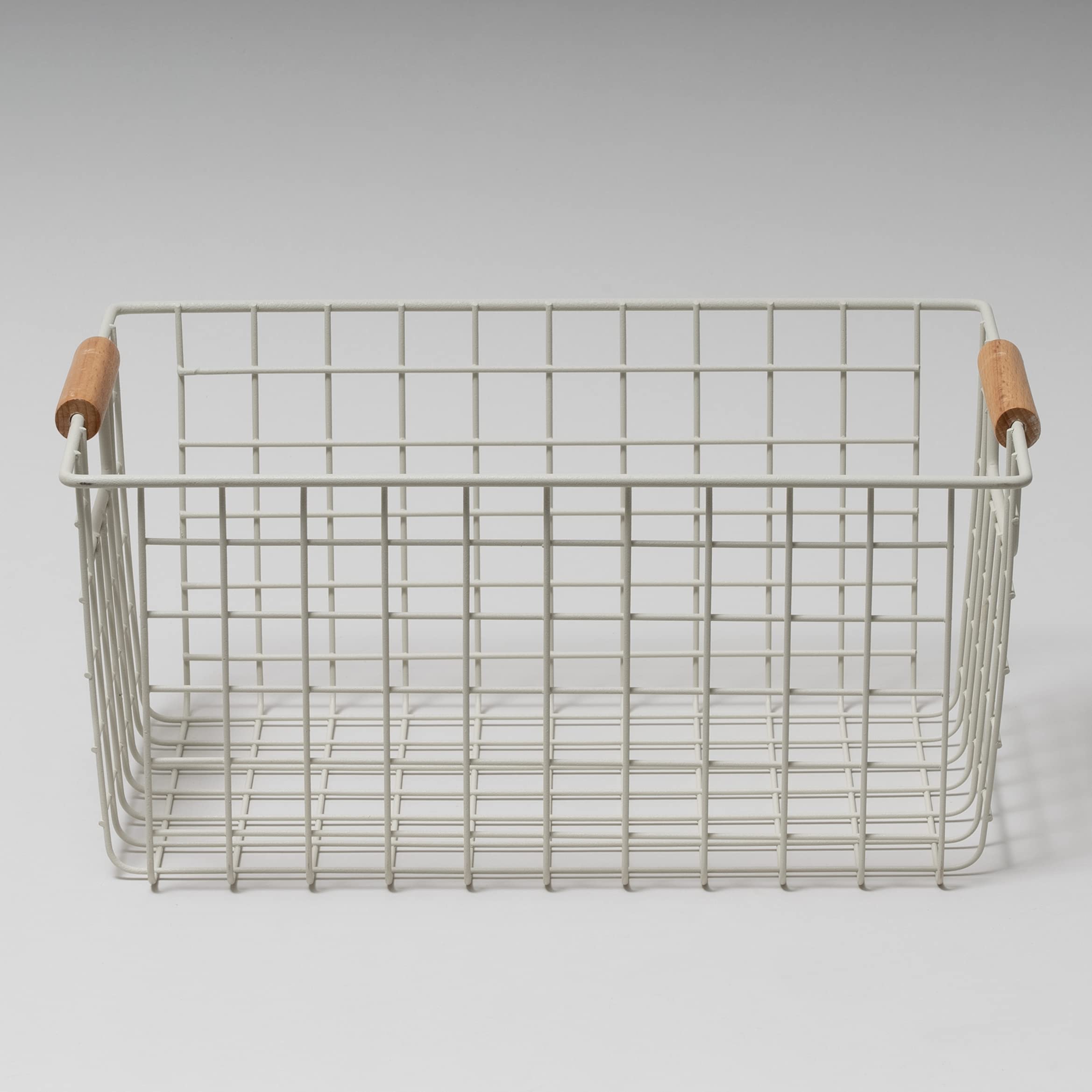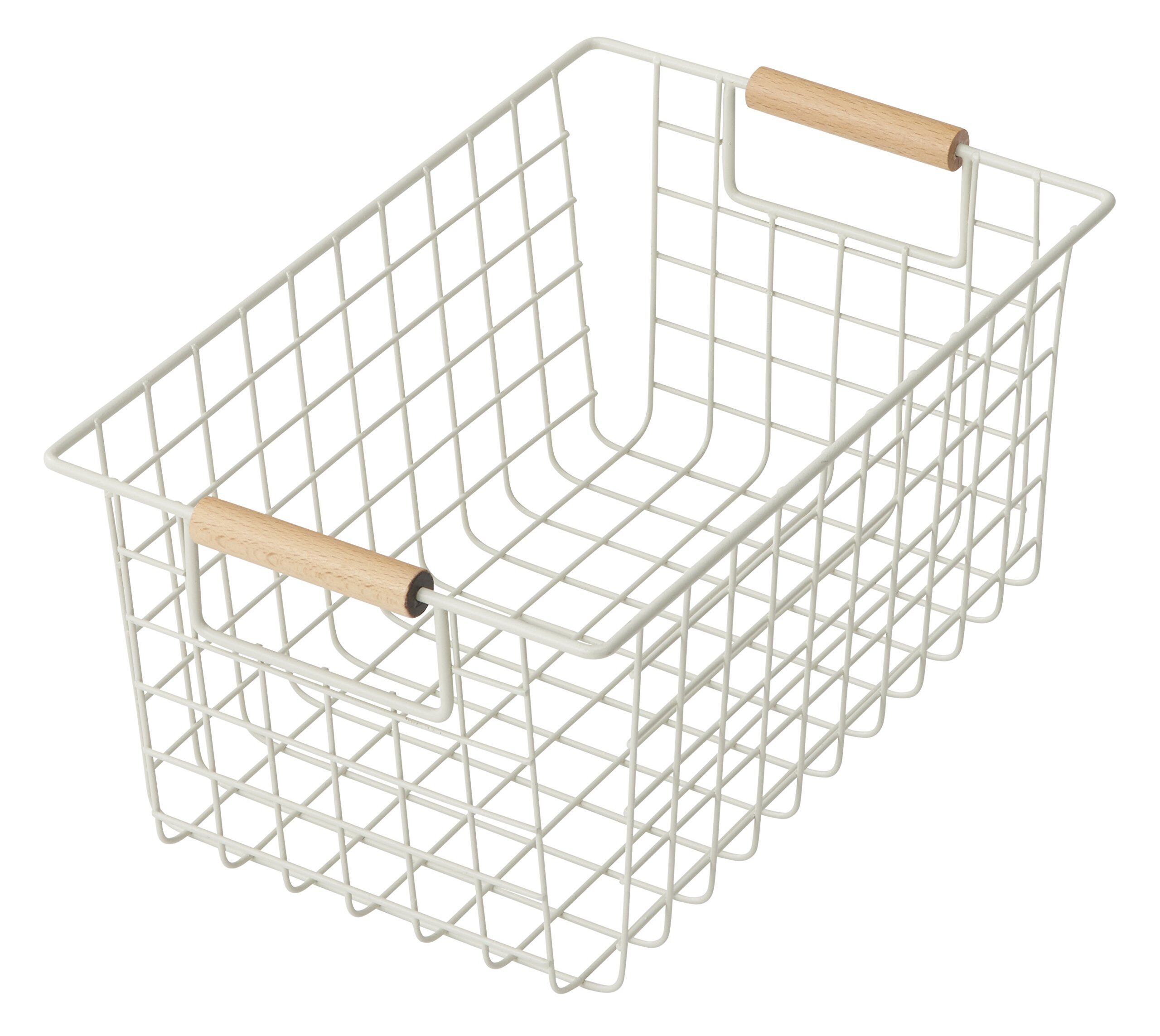 【数量限定】パール金属 バスケット サンドホワイト Sサイズ ワイヤーバスケット 木柄 N-8318