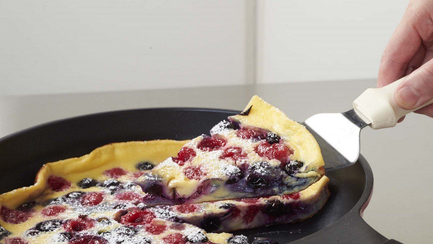 丈夫・軽量・キズに強い!金属ヘラが使えます。内面にリベットの出っ張りがないので洗いやすく、お手入れもラクラクです。