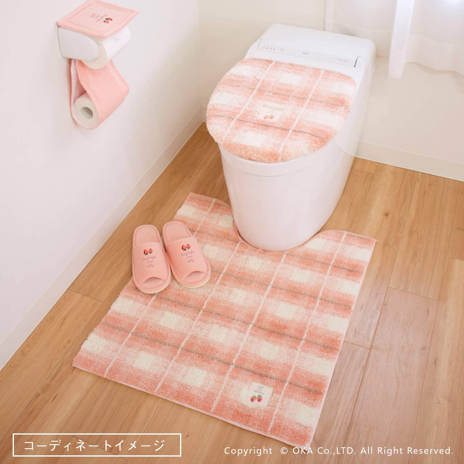 オカ(OKA) フライス トイレマット ロングタイプ 約75cm×63cm ピンク(チェック 北欧)