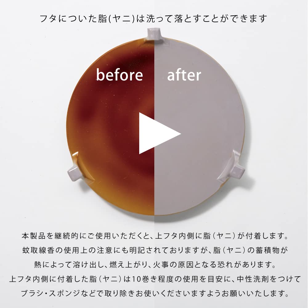 本体・フタはヤニで汚れても丸洗いが可能です。 付属の不燃ガラスファイバーシートを敷き、その上に蚊取り線香を置いて使います。 シートは繰り返しお使いいただけますが、汚れが気になる方は交換用が別売りでございます。