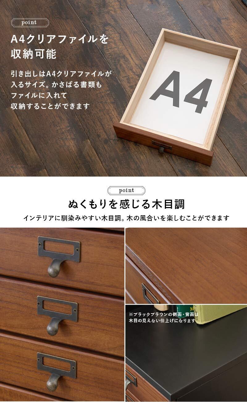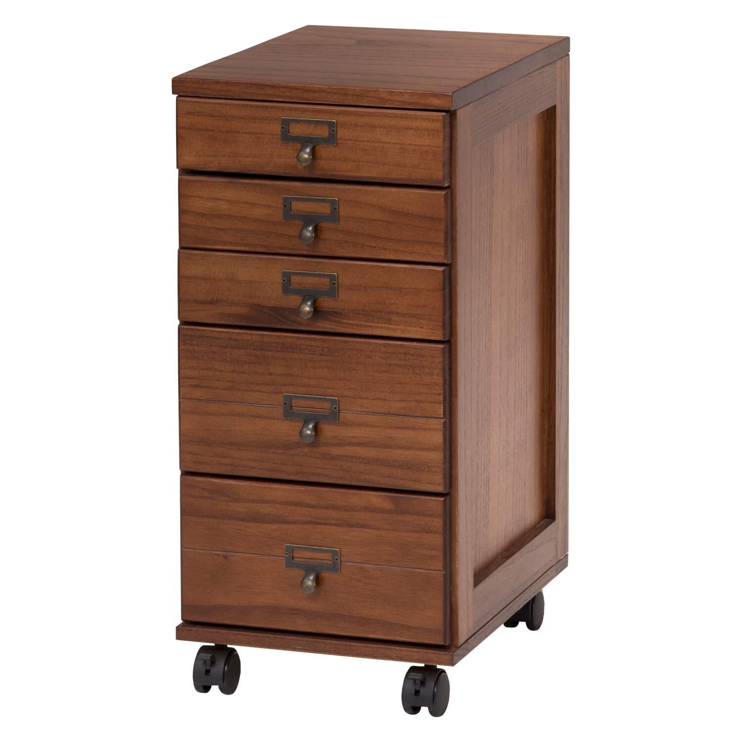 萩原(Hagihara) 多段チェスト 書類チェスト 書類 棚 A4 引出5段 【すぐに使えるほぼ完成品】キャビネット ドキュメント 天然木 ネームプレート付 キャスター付 ブラウン MCH-6170BR