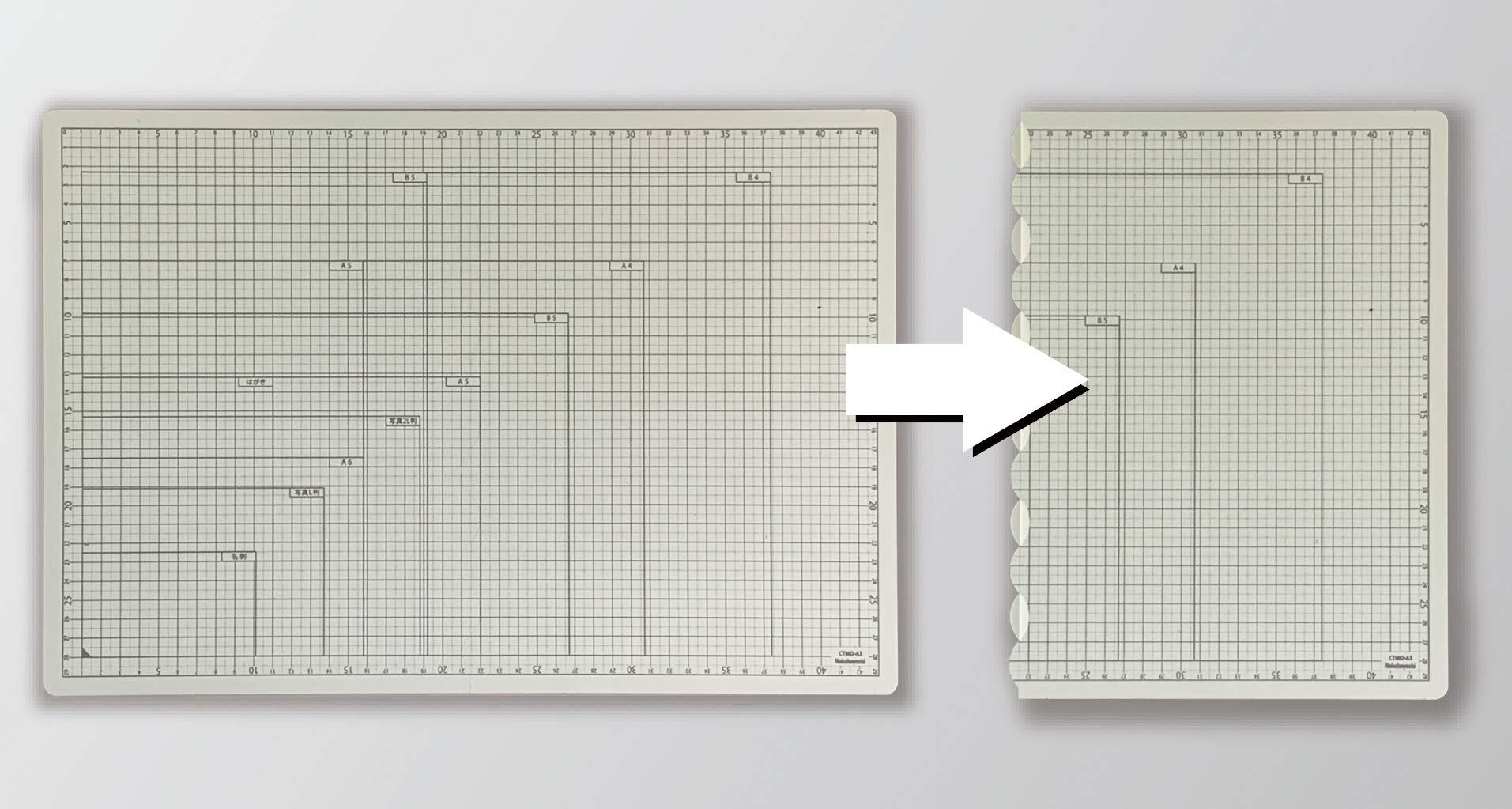 【数量限定】ナカバヤシ 折りたたみカッティングマット 両面タイプ・片面粘土板・A3/グレー CTMO-A3W-N