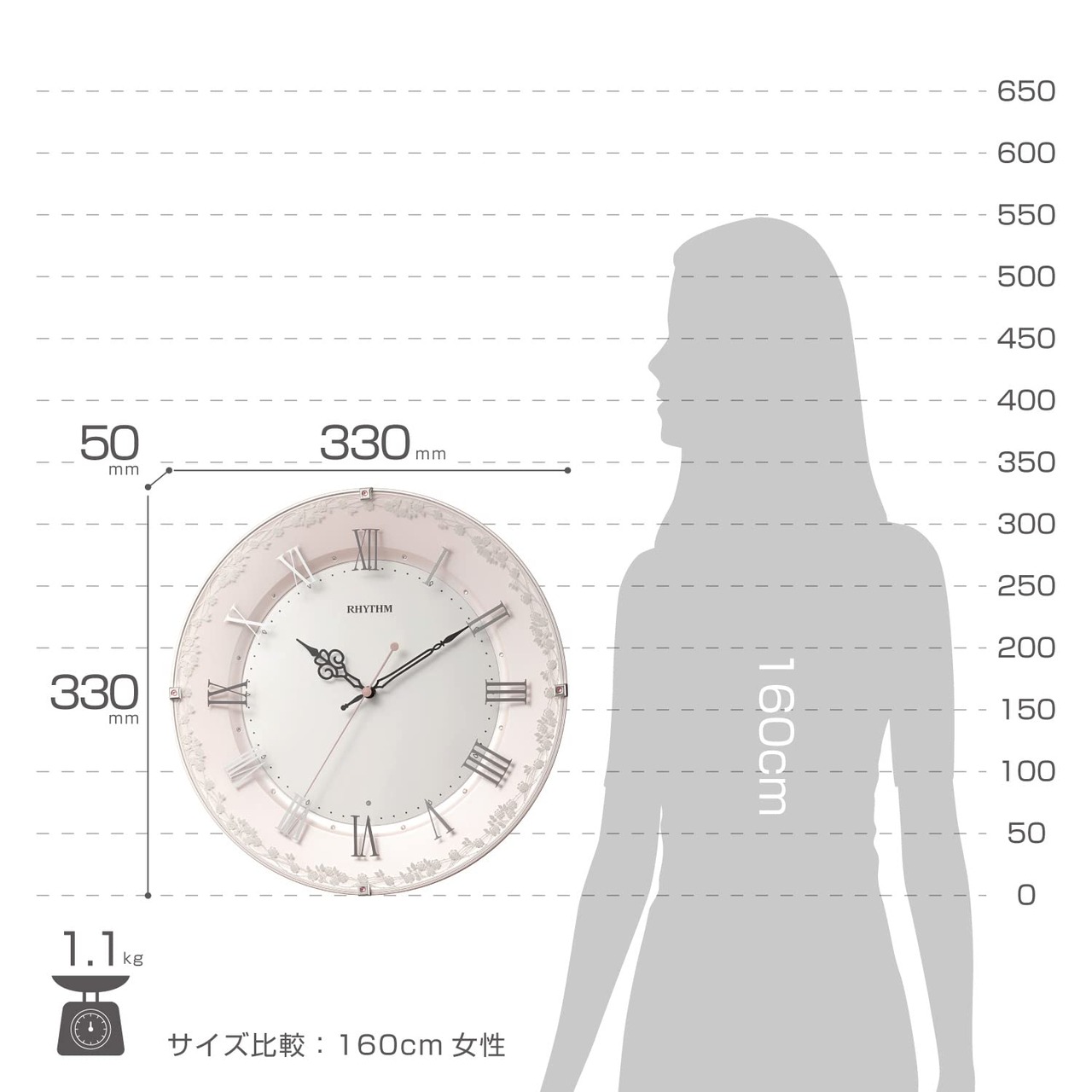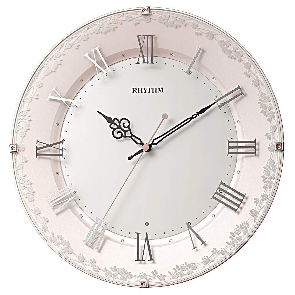 リズム(RHYTHM) 掛け時計 電波時計 アナログ 連続秒針 インテリア 装飾ガラス 洋風 時計 ピンク Φ33x4.9cm 8MY538SR13