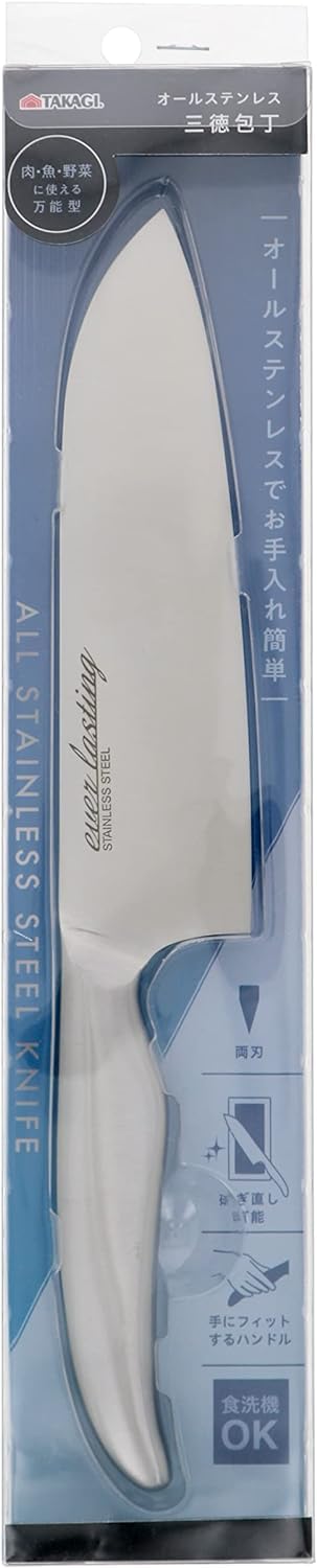 髙儀(Takagi) オールステンレス 三徳包丁 シルバー 両刃 食洗器対応 研ぎ直し可能 万能タイプ 手にフィットするハンドル 包丁 高儀 たかぎ TAKAGI