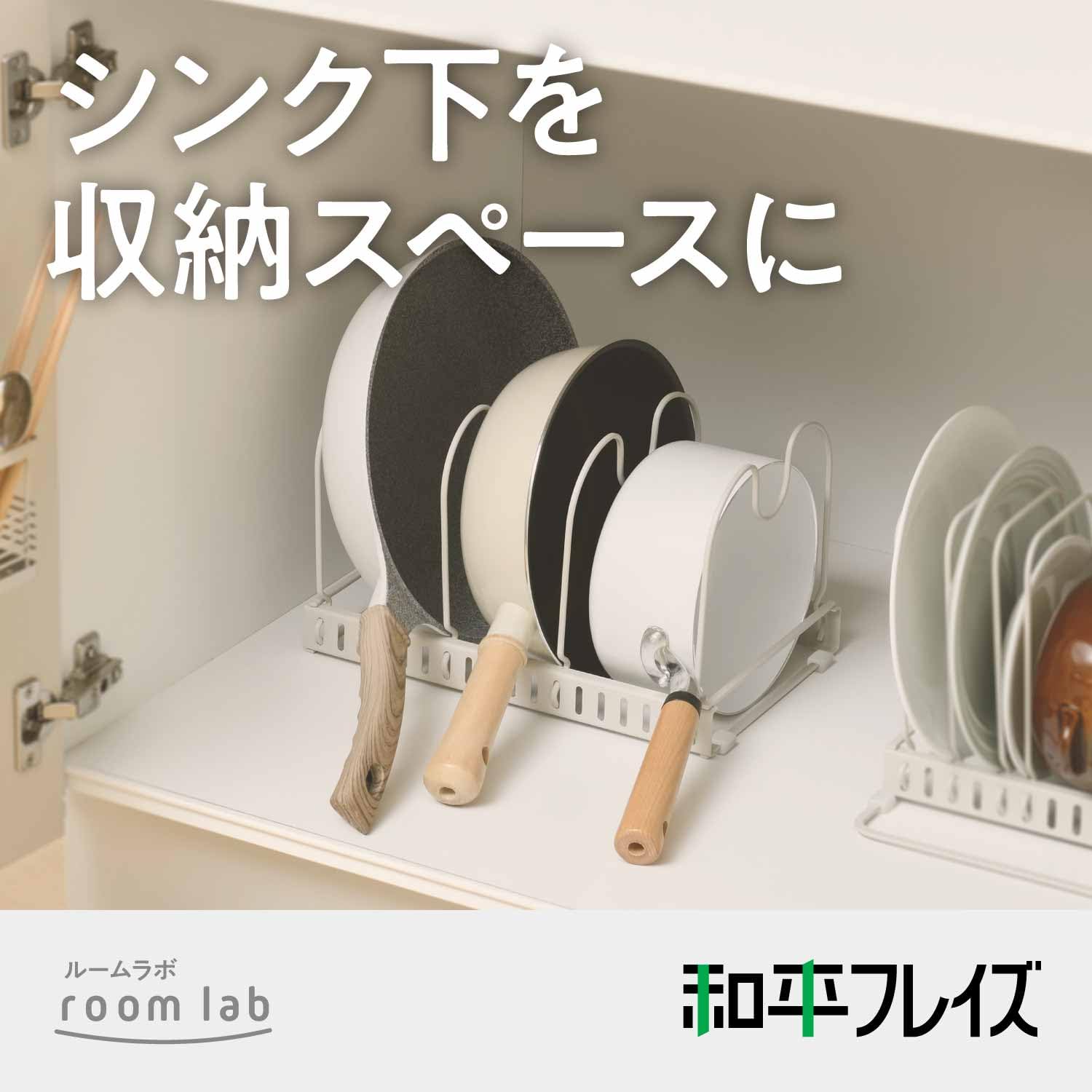 和平フレイズ 自由な位置で仕切れる フライパンスタンド シンク下収納 ルームラボ RG-0501