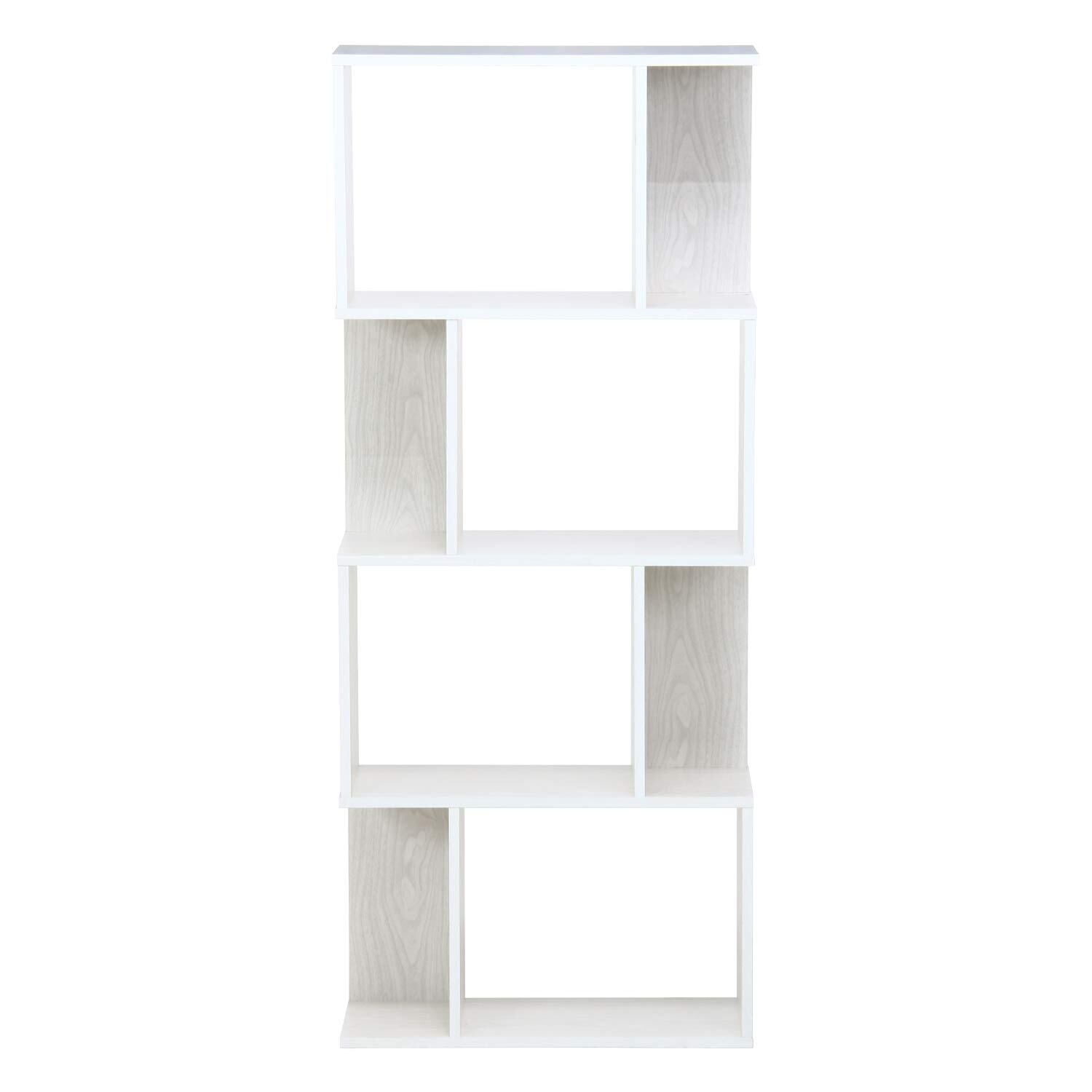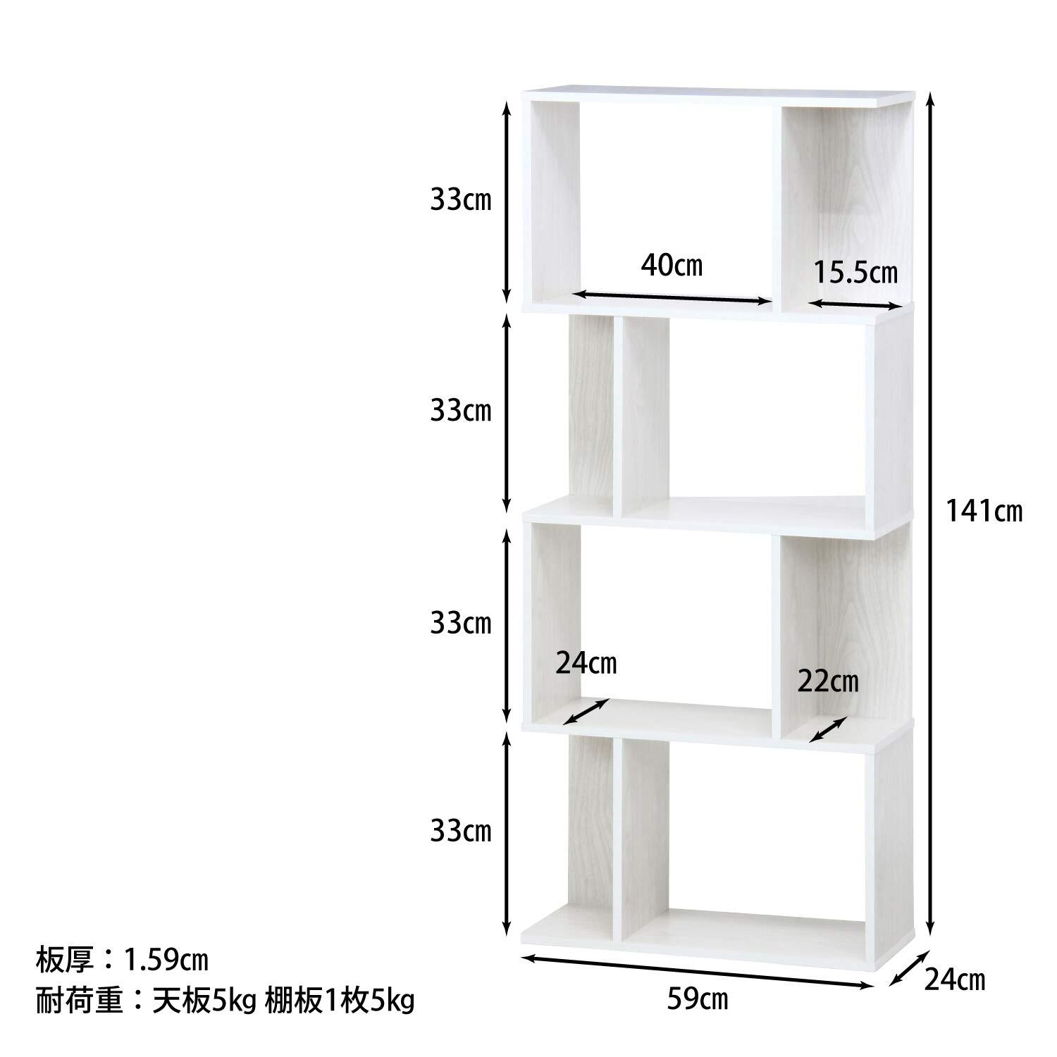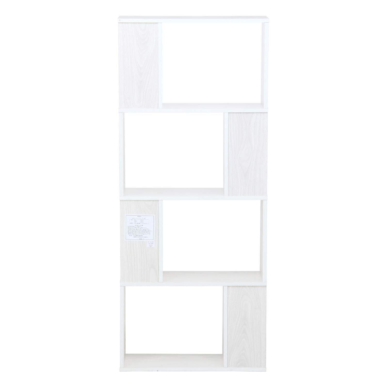 不二貿易 オープンラック シェルフ 4段 幅59×奥行24×高さ141cm ホワイトウォッシュ ディスプレイラック S型 組立商品 98715