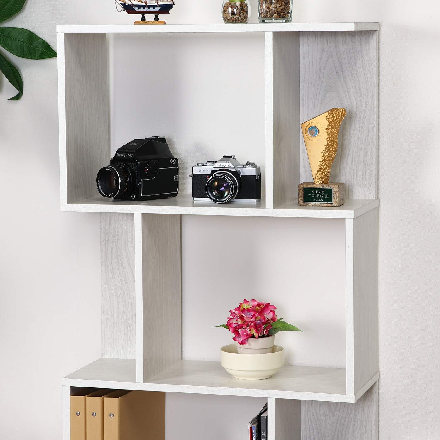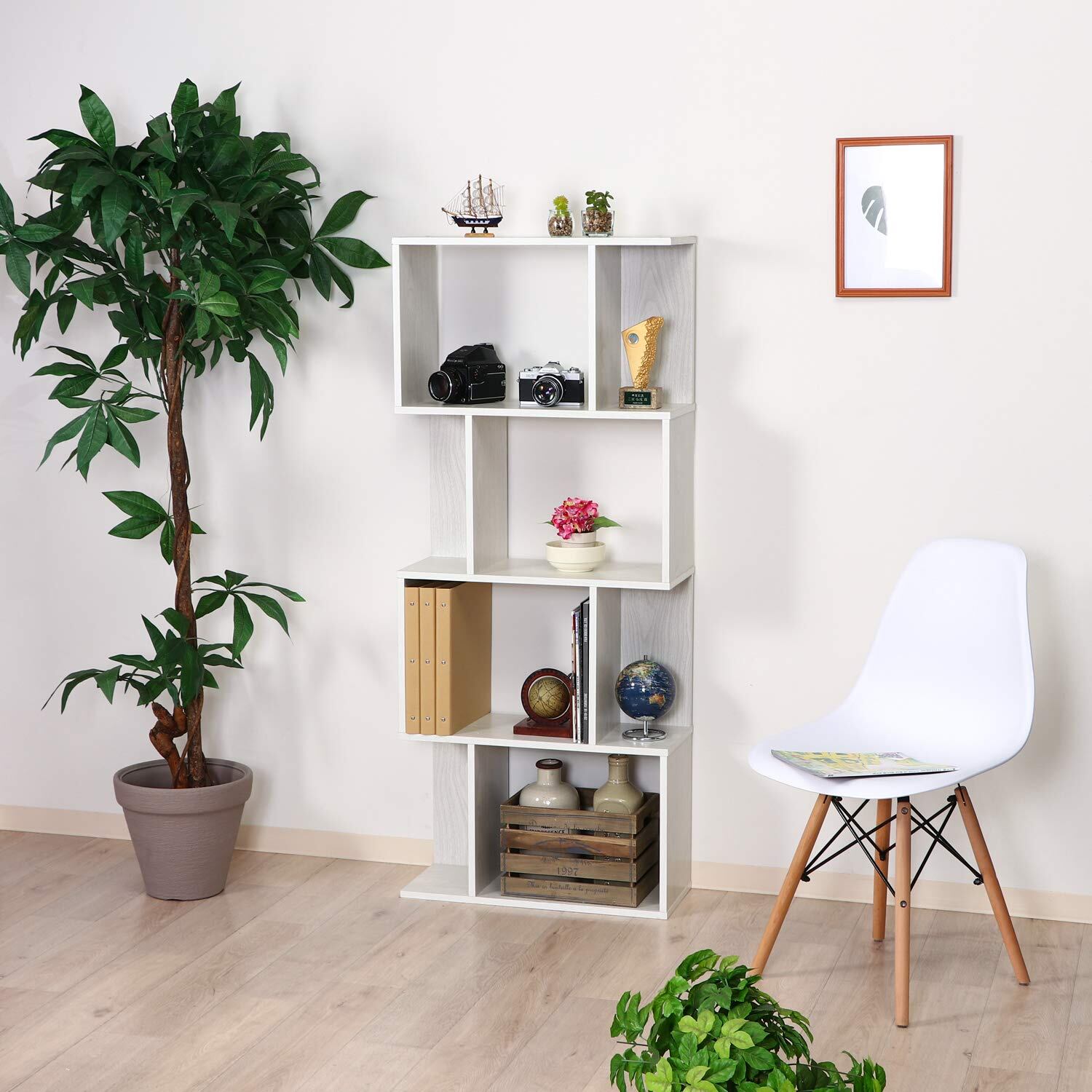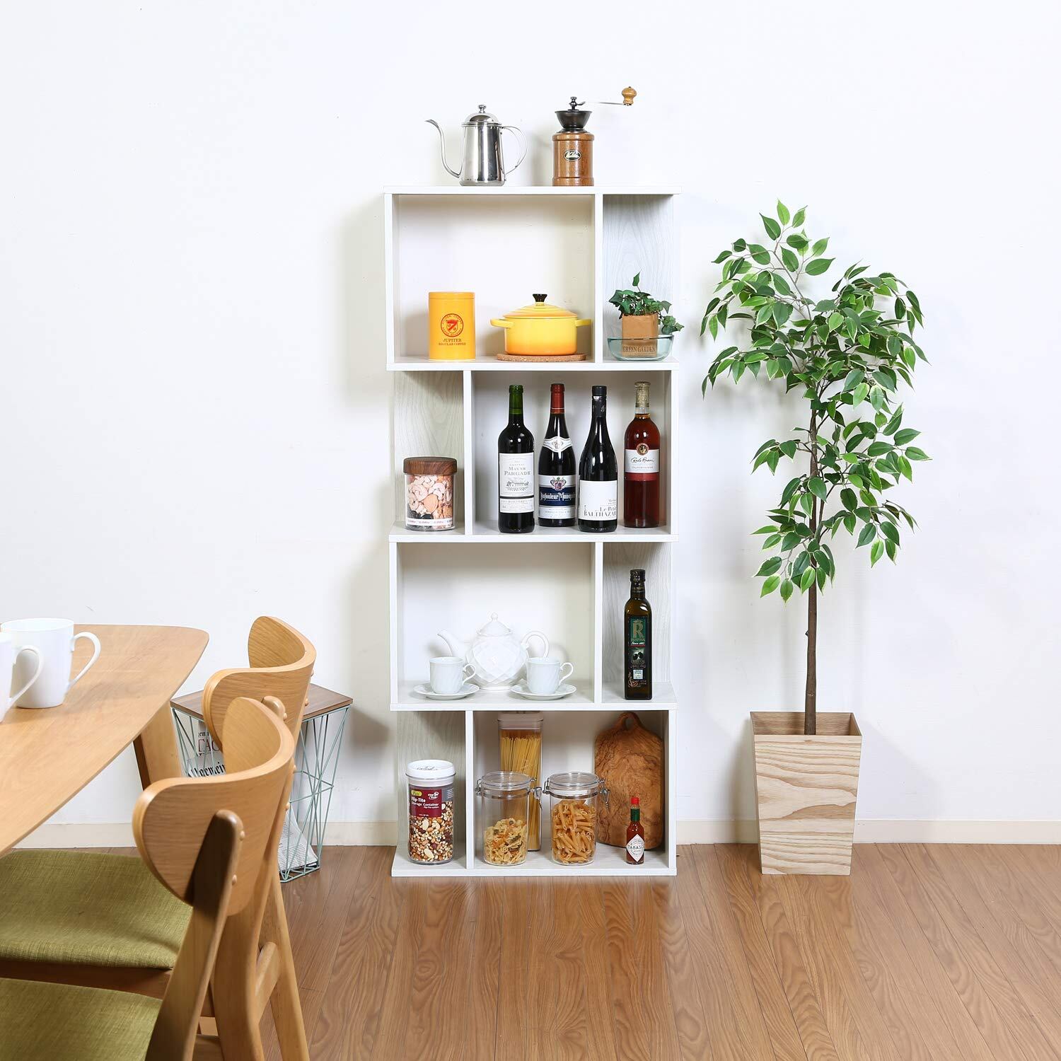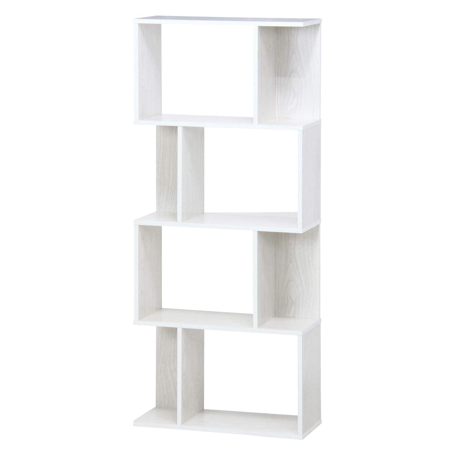 不二貿易 オープンラック シェルフ 4段 幅59×奥行24×高さ141cm ホワイトウォッシュ ディスプレイラック S型 組立商品 98715