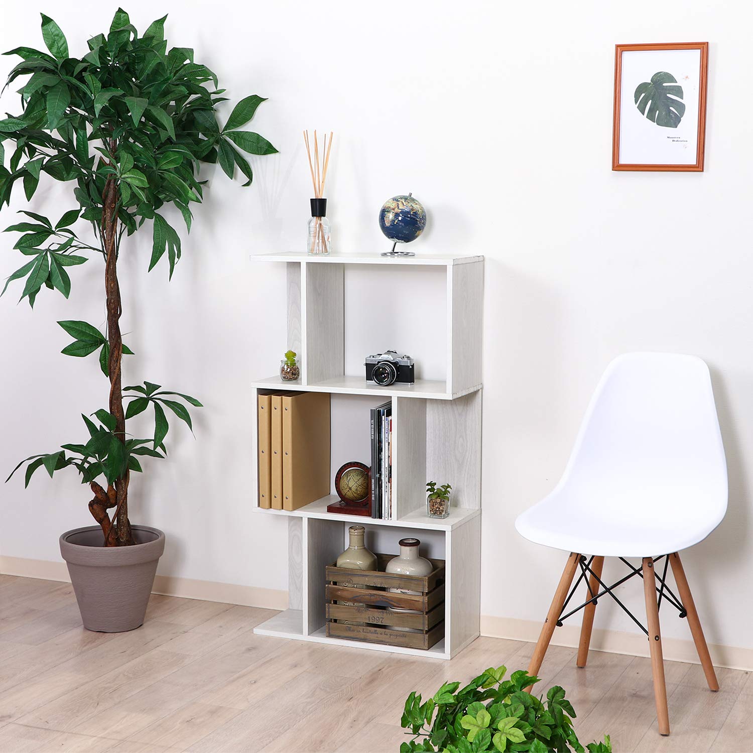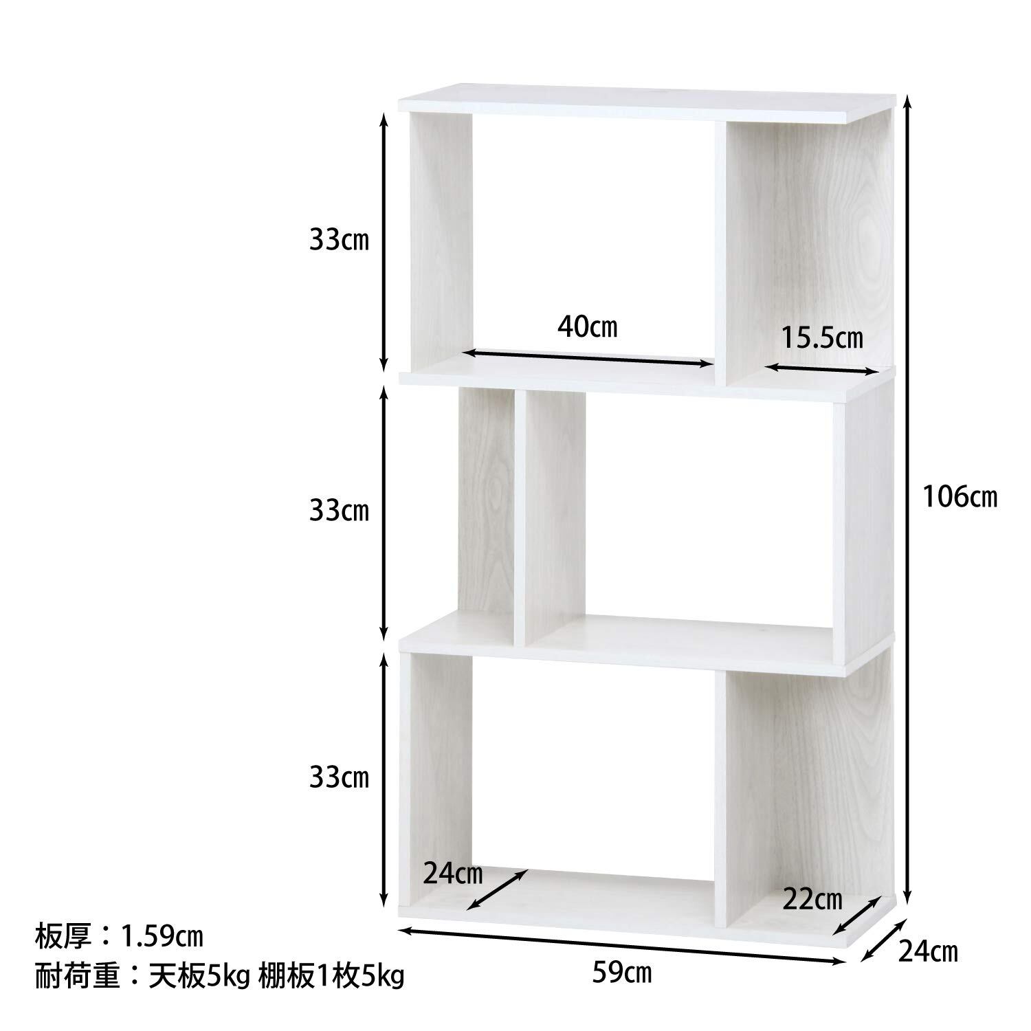 不二貿易 オープンラック シェルフ 3段 幅59×奥行24×高さ106cm ホワイトウォッシュ ディスプレイラック S型 組立商品 98712