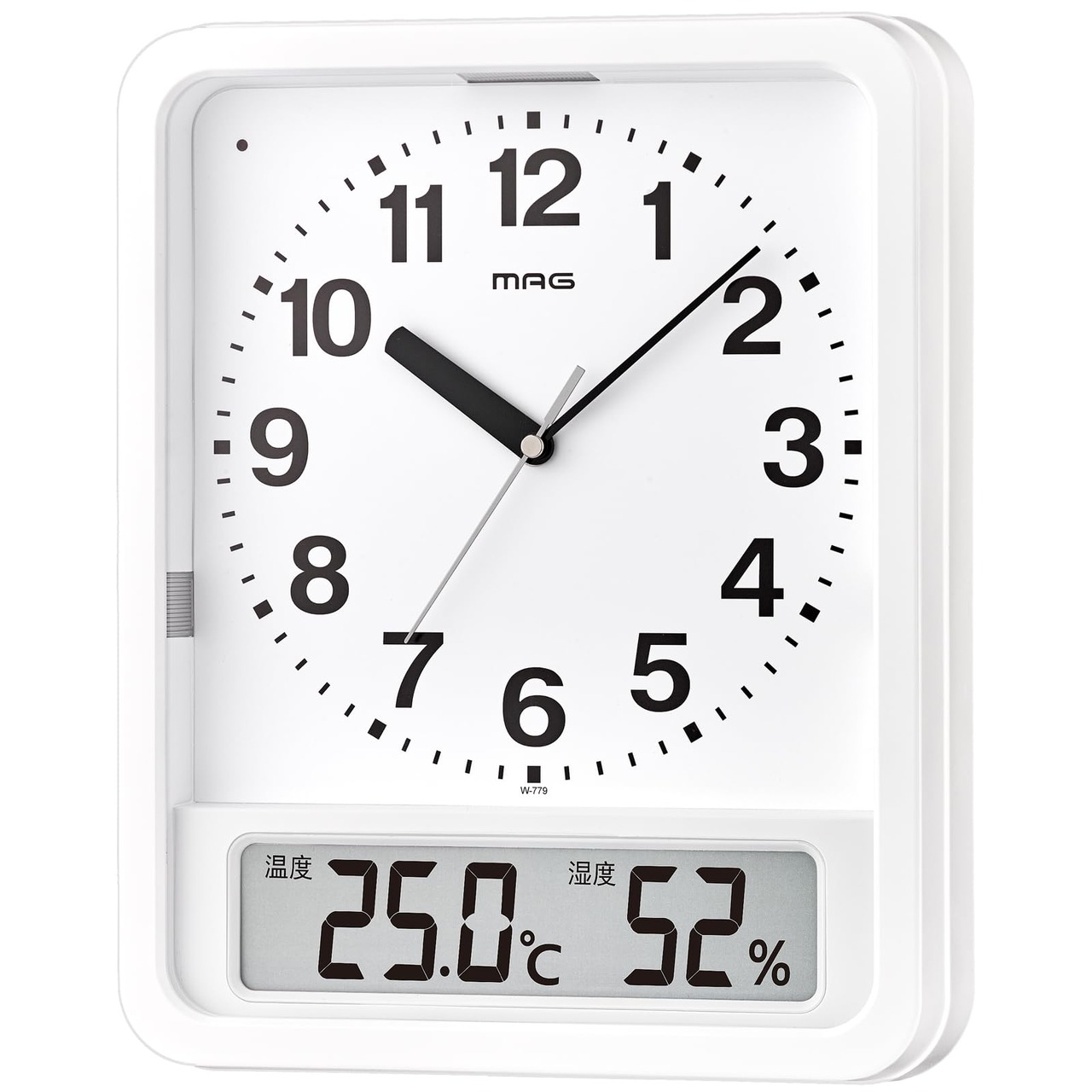MAG(マグ) 掛け時計 電波時計 アナログ ルック ライト付き 自動点灯 温度 湿度 表示 置き掛け兼用 ホワイト W-779WH-Z