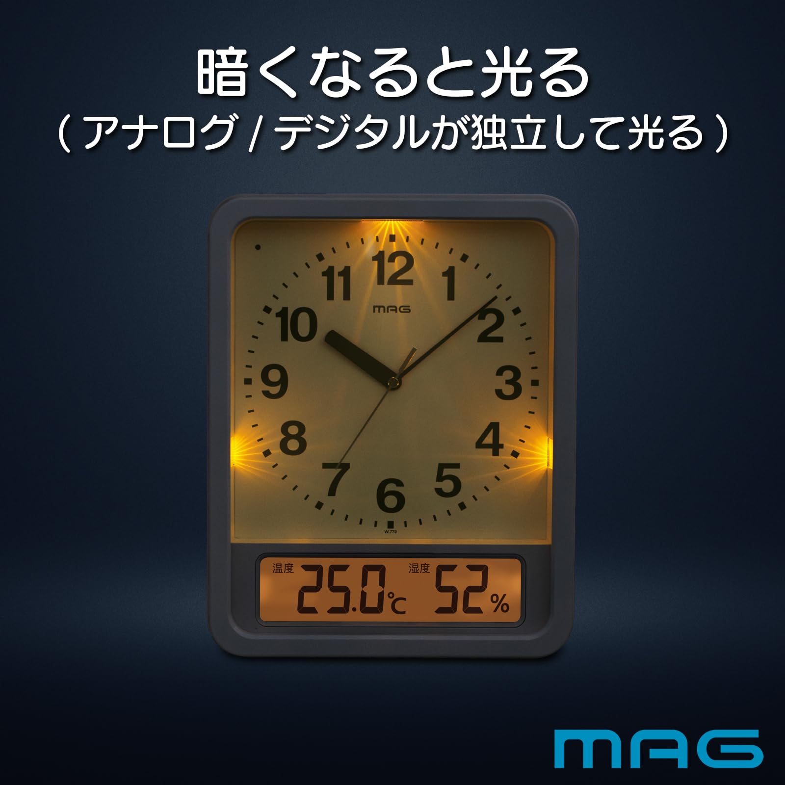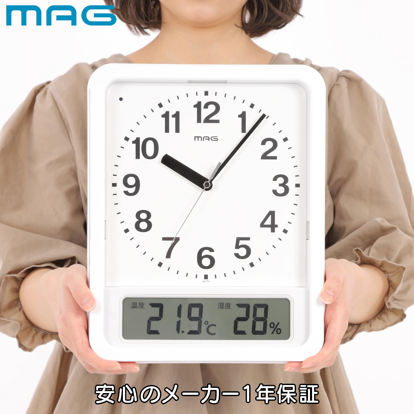 【特価セール】MAG(マグ) 掛け時計 電波時計 アナログ ルック ライト付き 自動点灯 温度 湿度 表示 置き掛け兼用 ホワイト W-779WH-Z