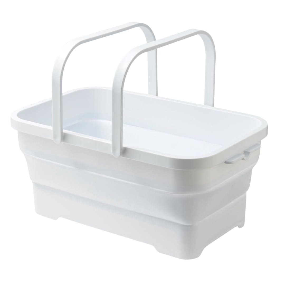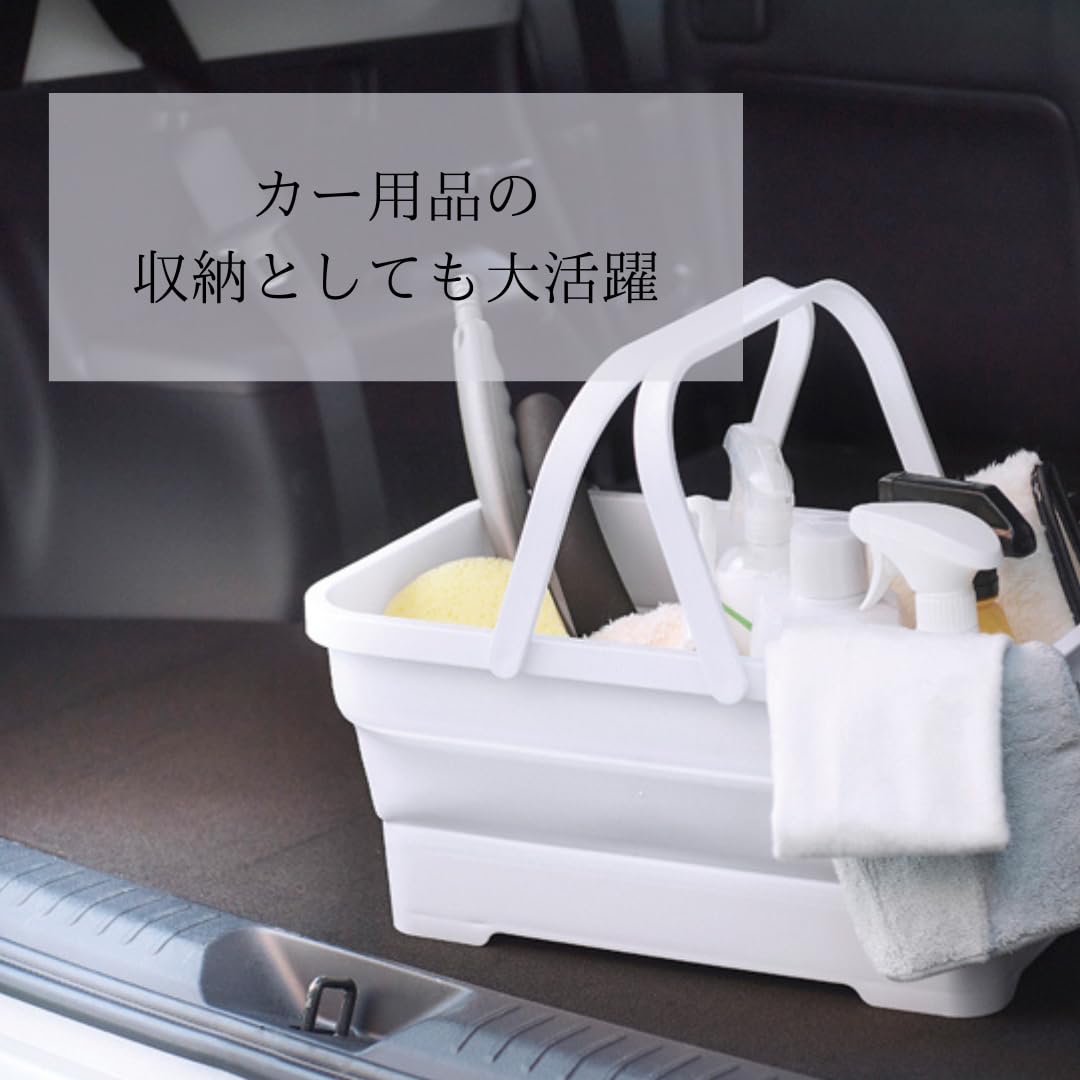 イセトウ(Isetou) 折りたたみバスケット ソフトバスケット ホワイト 15L 幅46.3×奥行29.0×高さ6.8~19.6cm 日本製 水抜き栓付き 折りたたみ 防災 ランドリー ペットバス 清掃 カー用品 マルチバスケット I-581