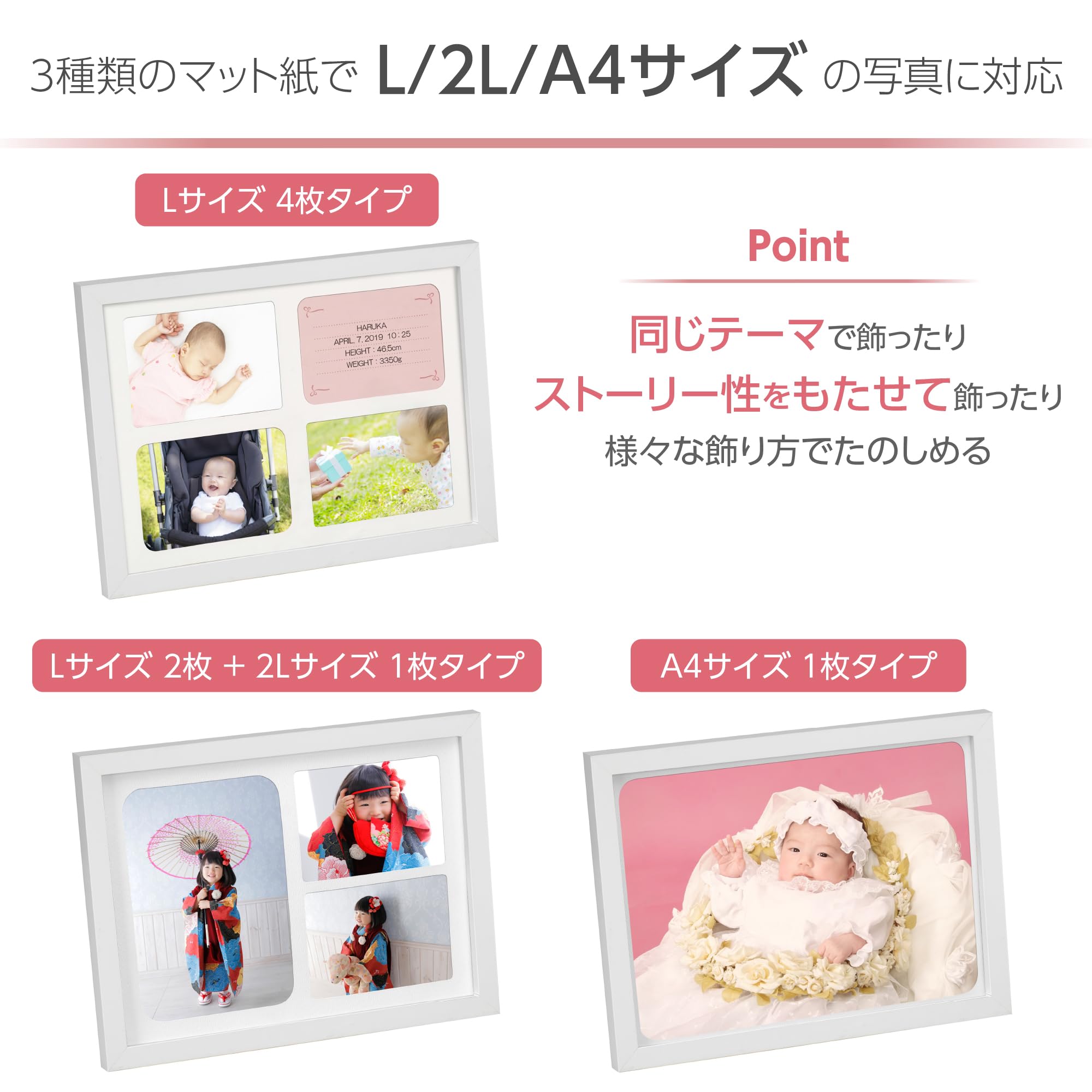 ・[中額2]Lサイズ2枚と、2Lサイズ1枚の写真を飾れます。