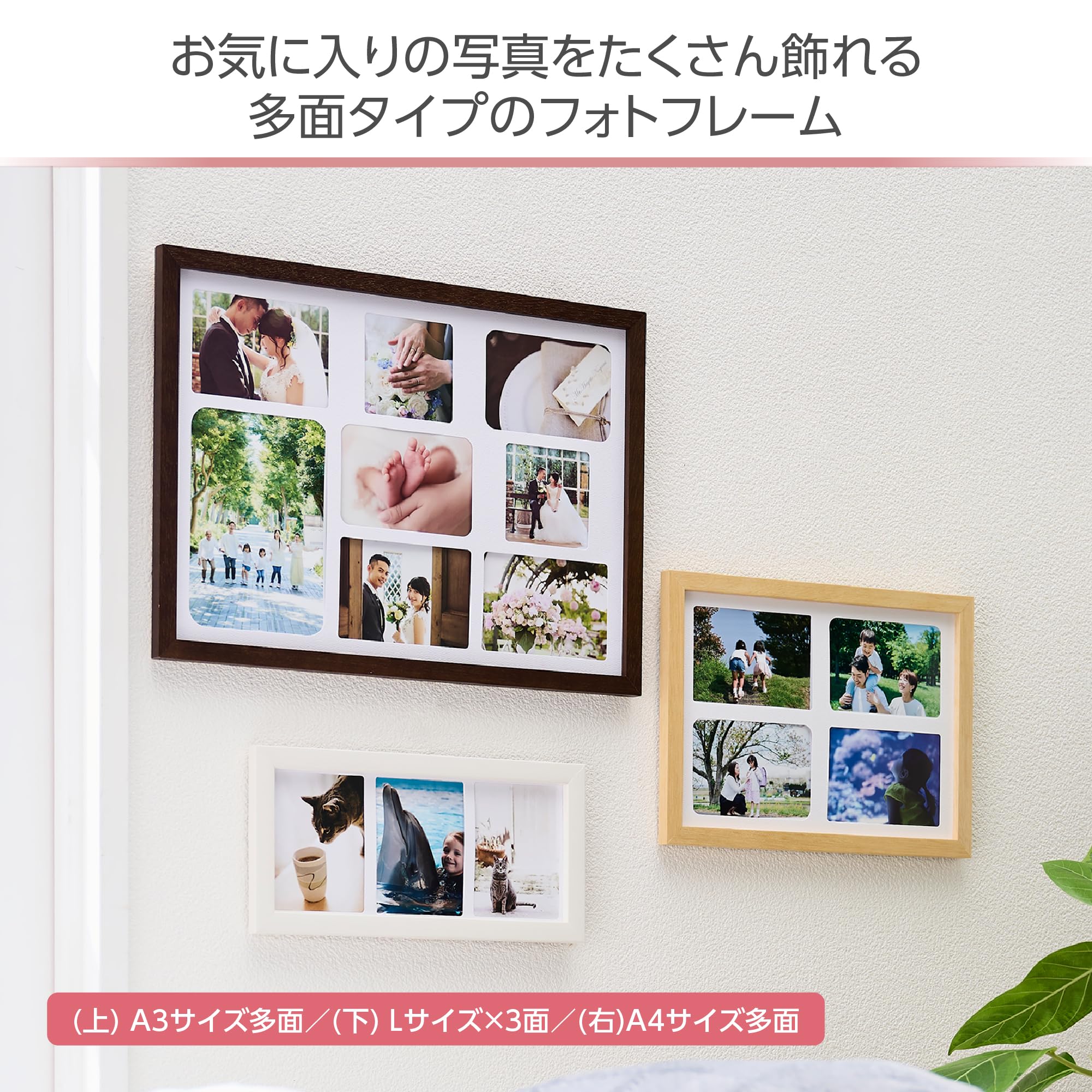 インテリアになじみやすい色のフレームを使った、写真をたくさん飾れる木製の多面額です。