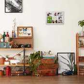 インテリアになじみやすい色のフレームを使った、写真をたくさん飾れる木製の多面額です。