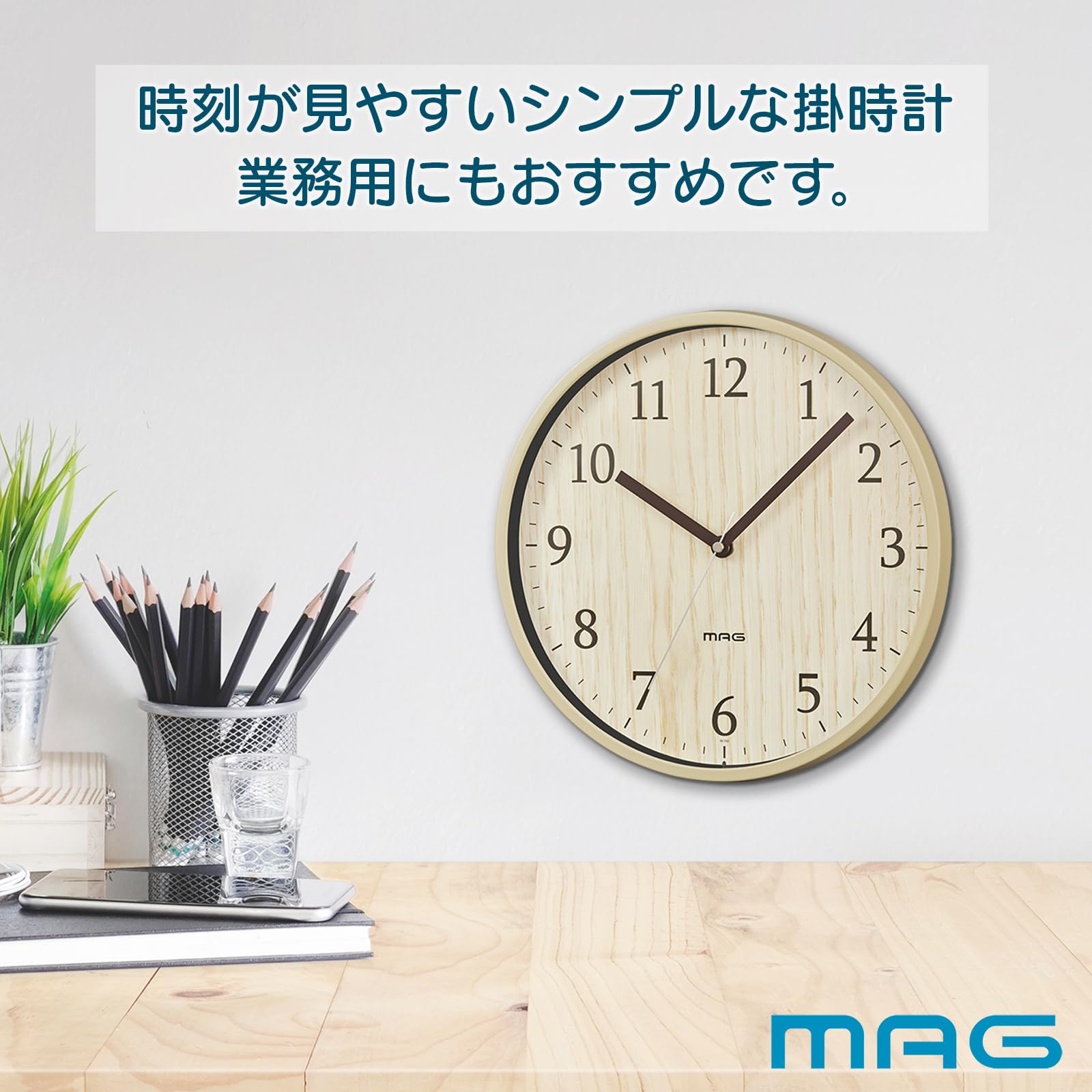 MAG(マグ) 掛け時計 アナログ 梓 静音 連続秒針 ナチュラル W-742N-Z