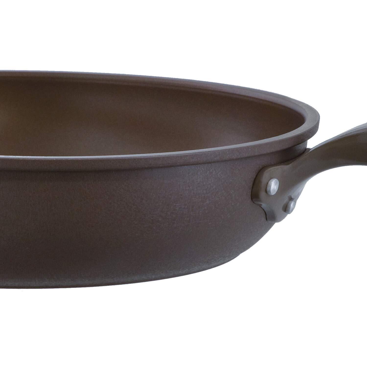 ●素材:本体/アルミニウム合金 オリジナル縁巻き深型形状、(エッグパンは除く)、内面/ダイキンEKダイヤモンドコートブラウンカラー(耐摩耗性試験30万回)、外面/耐熱焼付塗装、底面/ステンレス(SUS430) 0.4mm圧着、ハンドル/フェノール樹脂