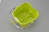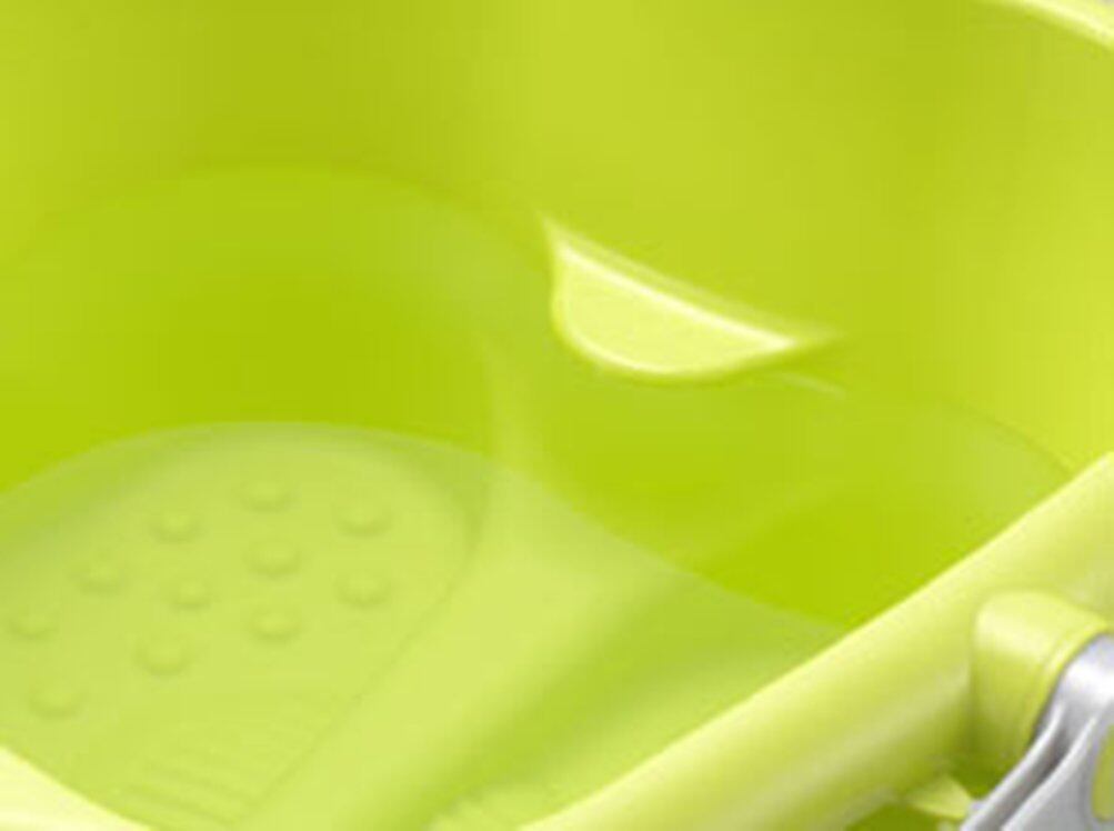 快適な足湯を考えた「リラックス足湯」かかと側が傾斜になっているので、足元がゆったり。つま先側にはタオルが掛けられ、スムーズに足を拭くことが出来ます。排水する際も、背面に傾斜があるので湯が捨てやすく、浴室の壁面などに立てかけておけば、かかと側の傾斜により水切れが良い構造です。また収納時はハンドルが足になり自立するので棚の上でも安定します。