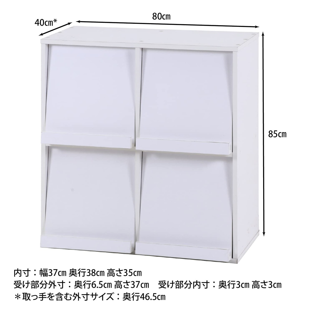 不二貿易 ディスプレイラック 本棚 幅80×奥行46.5×高さ85cm ホワイト 4マス フラップ扉 サイドボード マガジンラック 86034
