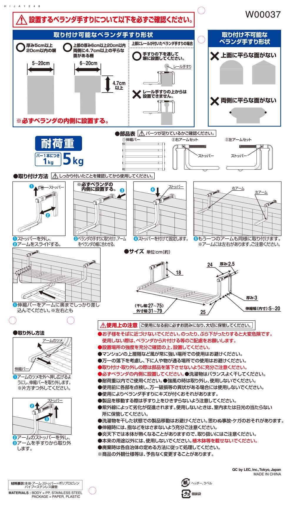 ●使用によりベランダ手すりにきずがつくおそれがあります。