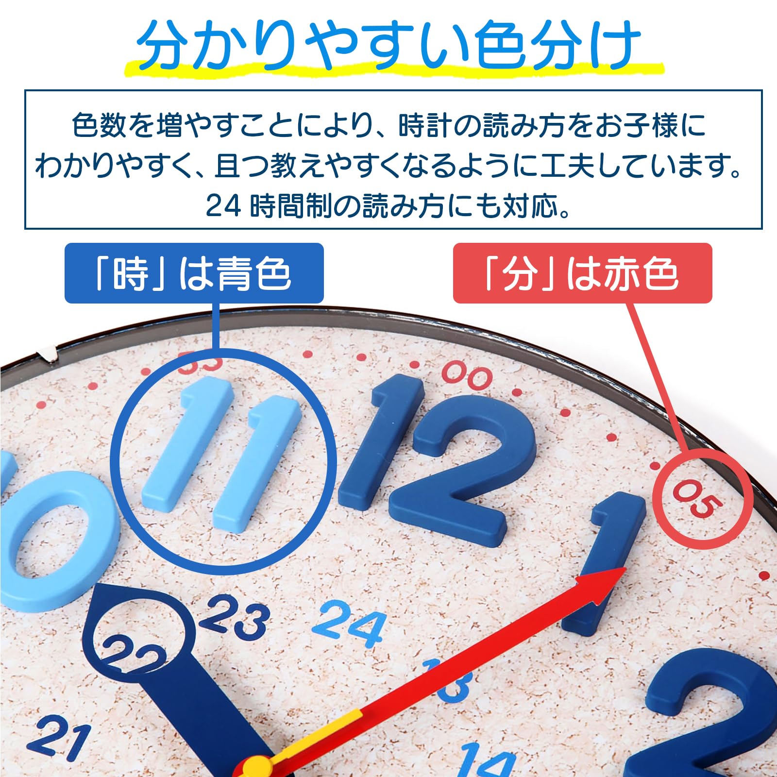 ●立体的な大きなインデックスや、細かな目盛りなど子供でも時間を確認しやすい表示になっています