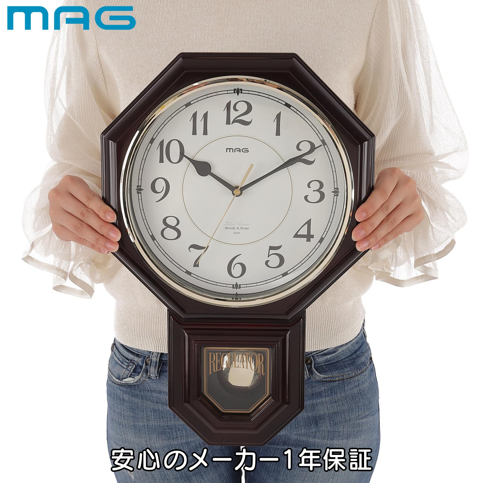 MAG(マグ) 掛け時計 振り子 アナログ 西洋館 静音 連続秒針 メロディ 報時機能付き ブラウン W-670BR