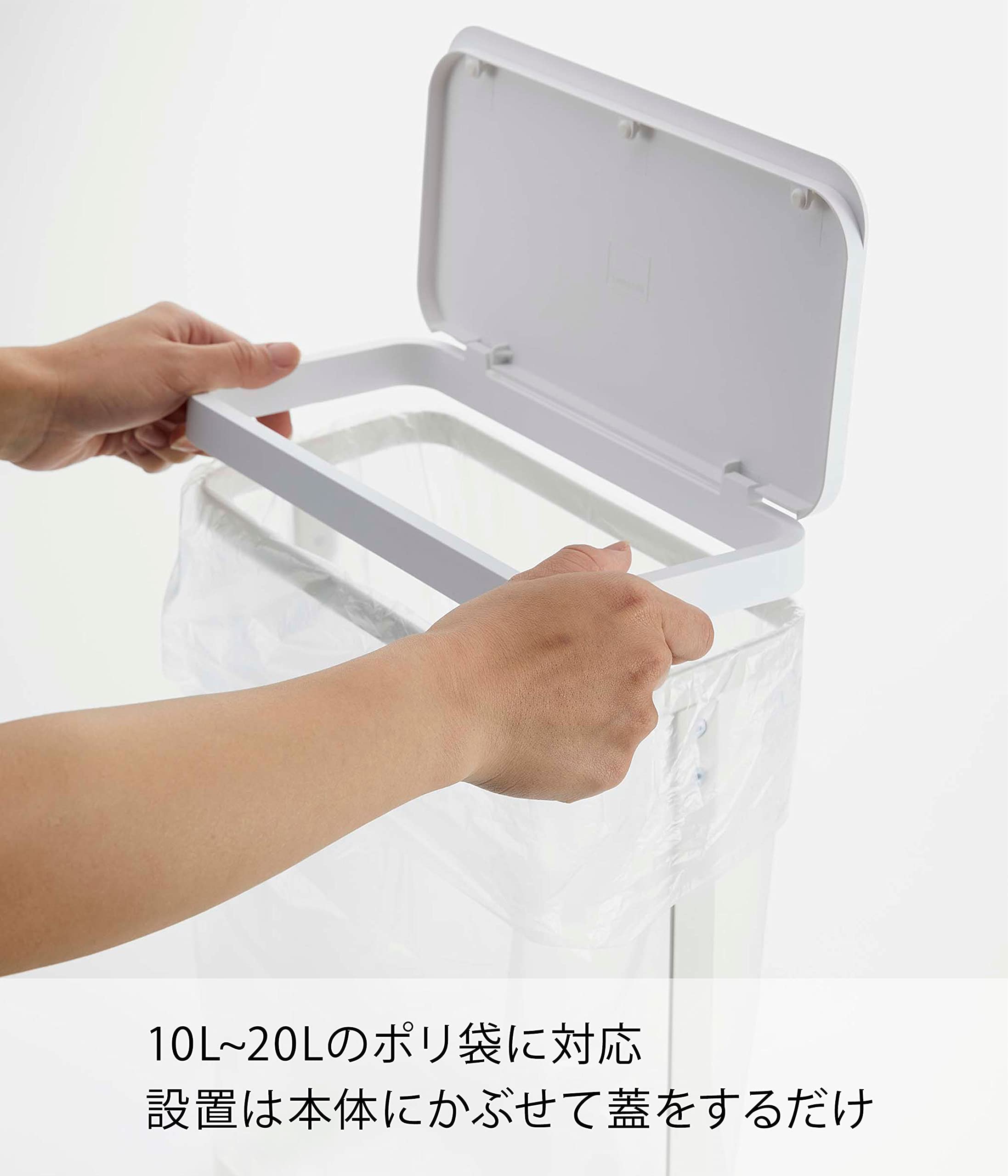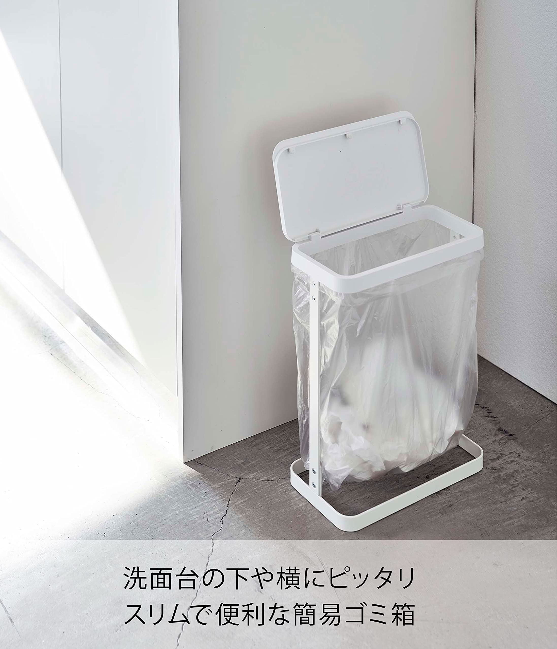 10L~20Lのポリ袋を本体にかぶせて蓋をするだけ! 洗面台の下や横で使えるスリムで便利な簡易ゴミ箱。