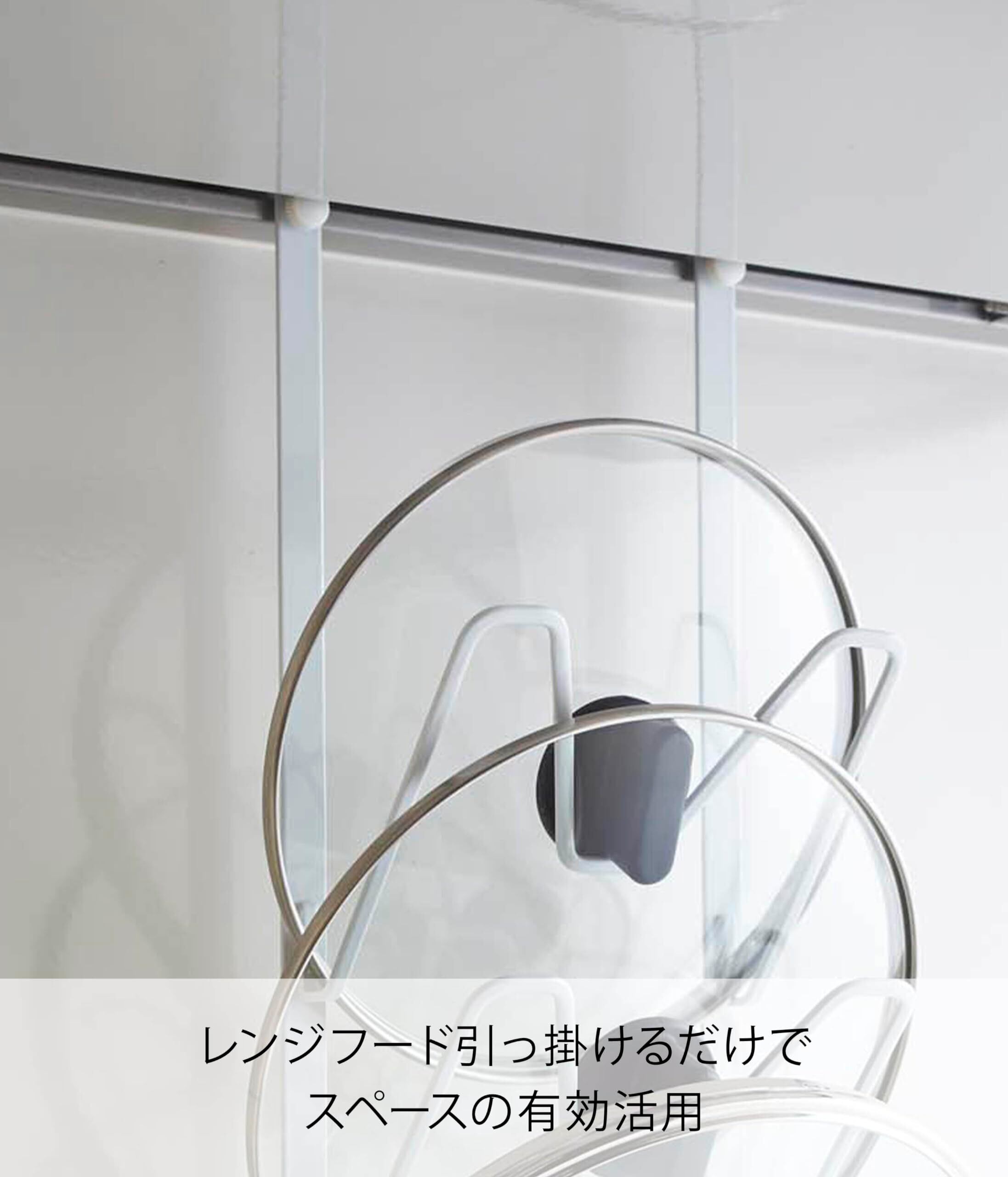 よく使うなべ蓋をレンジフード下にすっきり収納できます。