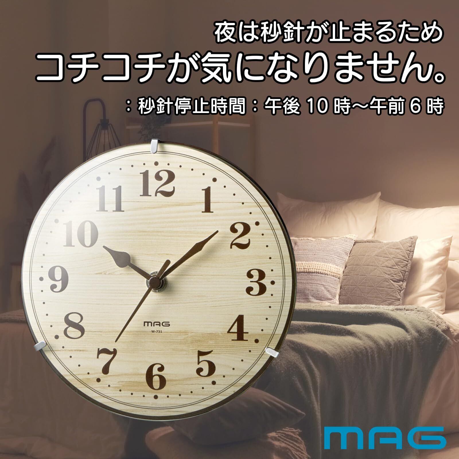 MAG(マグ) 置き時計 電波 アナログ インテリア 夜間秒針停止機能付き 置き掛け兼用 球面ガラス 木目調 ナチュラル W-731N-Z