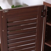 可動棚で、長いブーツも収納可能。扉は通気性の高いルーバー扉を使用しています。脚付きなので本体の下にも収納可能です。