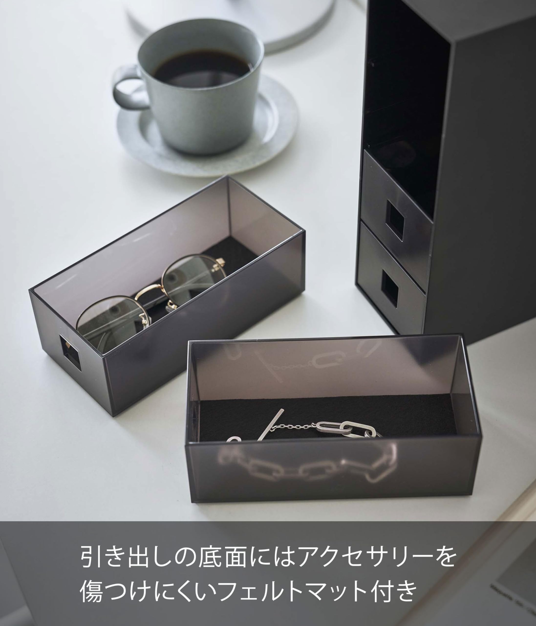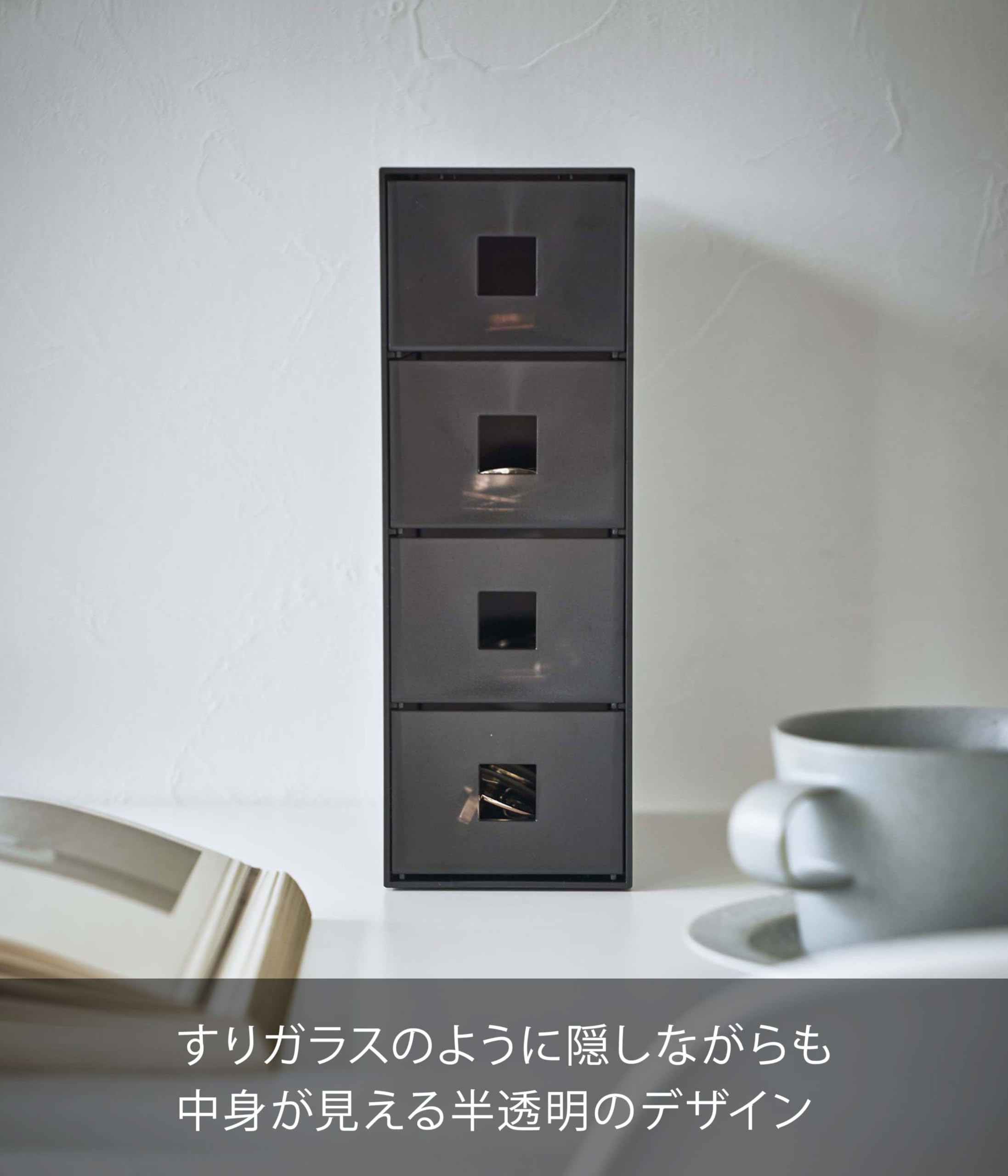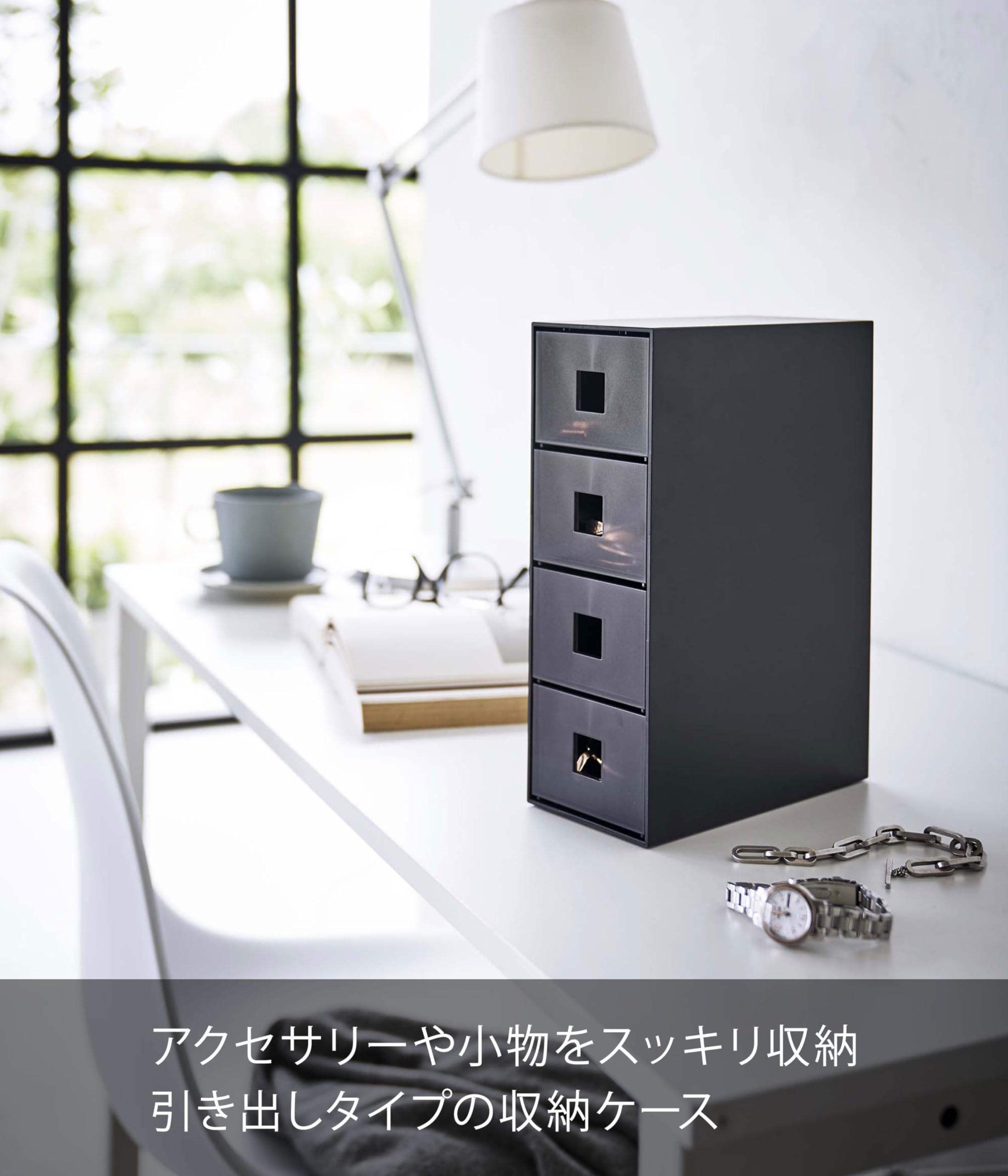 山崎実業(Yamazaki) サングラス & 小物 収納ケース ブラック 約W8.8×D17.5×H25.3cm タワー tower メガネ収納 4段 引き出し 6134