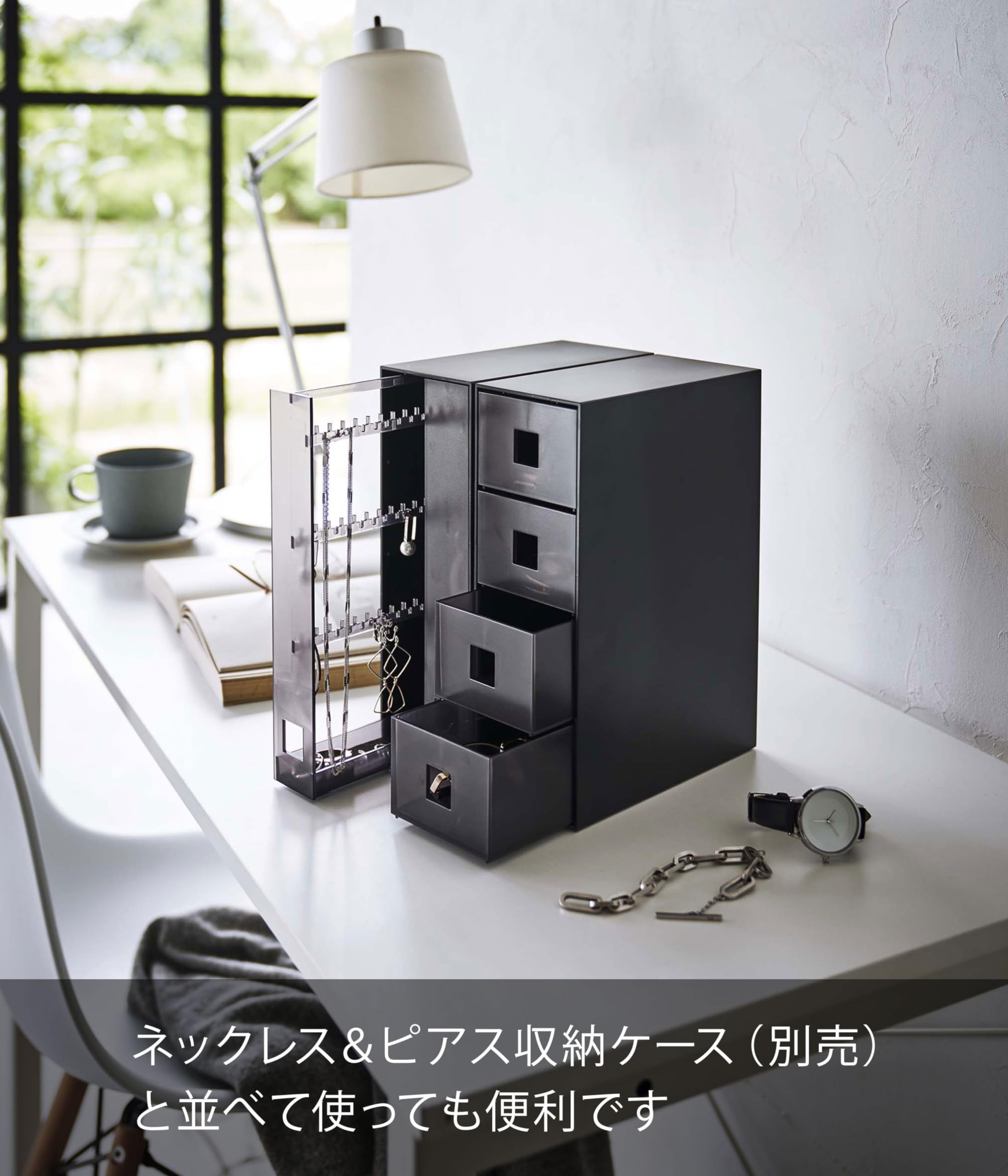 ネックレス&ピアス収納ケース(別売)と並べて使えばアクセサリー小物をまとめてスッキリと収納できます。