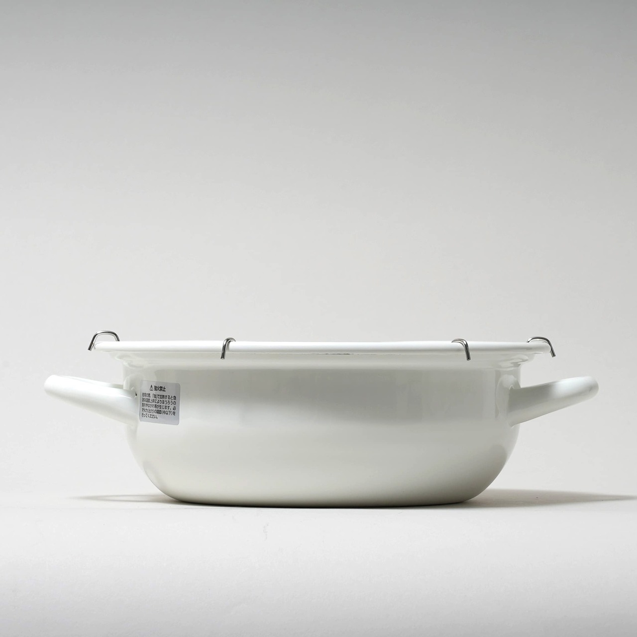 ご注意:2kw以上の高出力のIH(電磁調理器)は、急速に鍋底の温度が上がる為、鍋底が変形しほうろうが割れる原因になります。100VのIH(電磁調理器)での使用をお勧めします<br>IHの揚げ物機能では使用できません