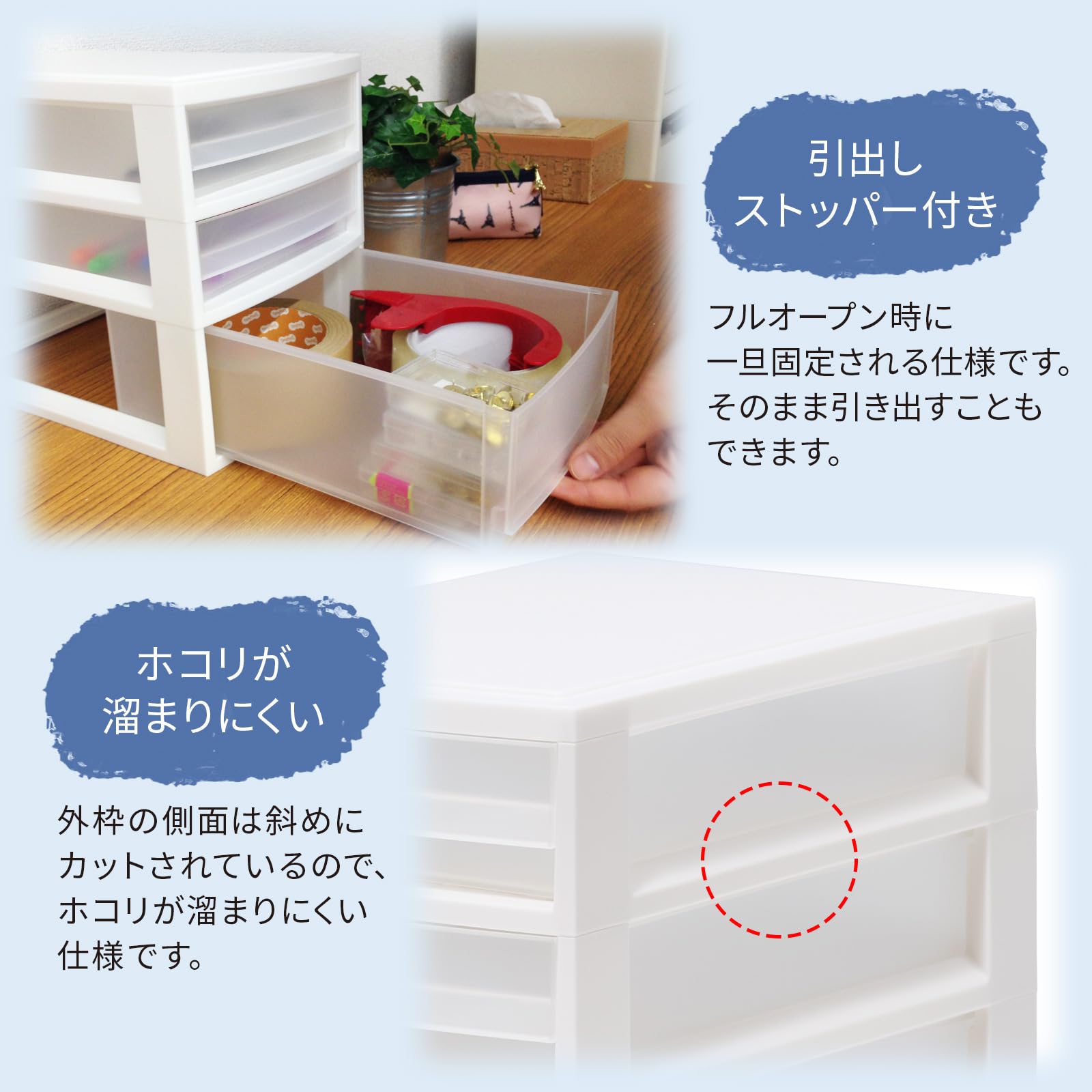 引出の抜け落ちを防ぐ、ストッパー付き。