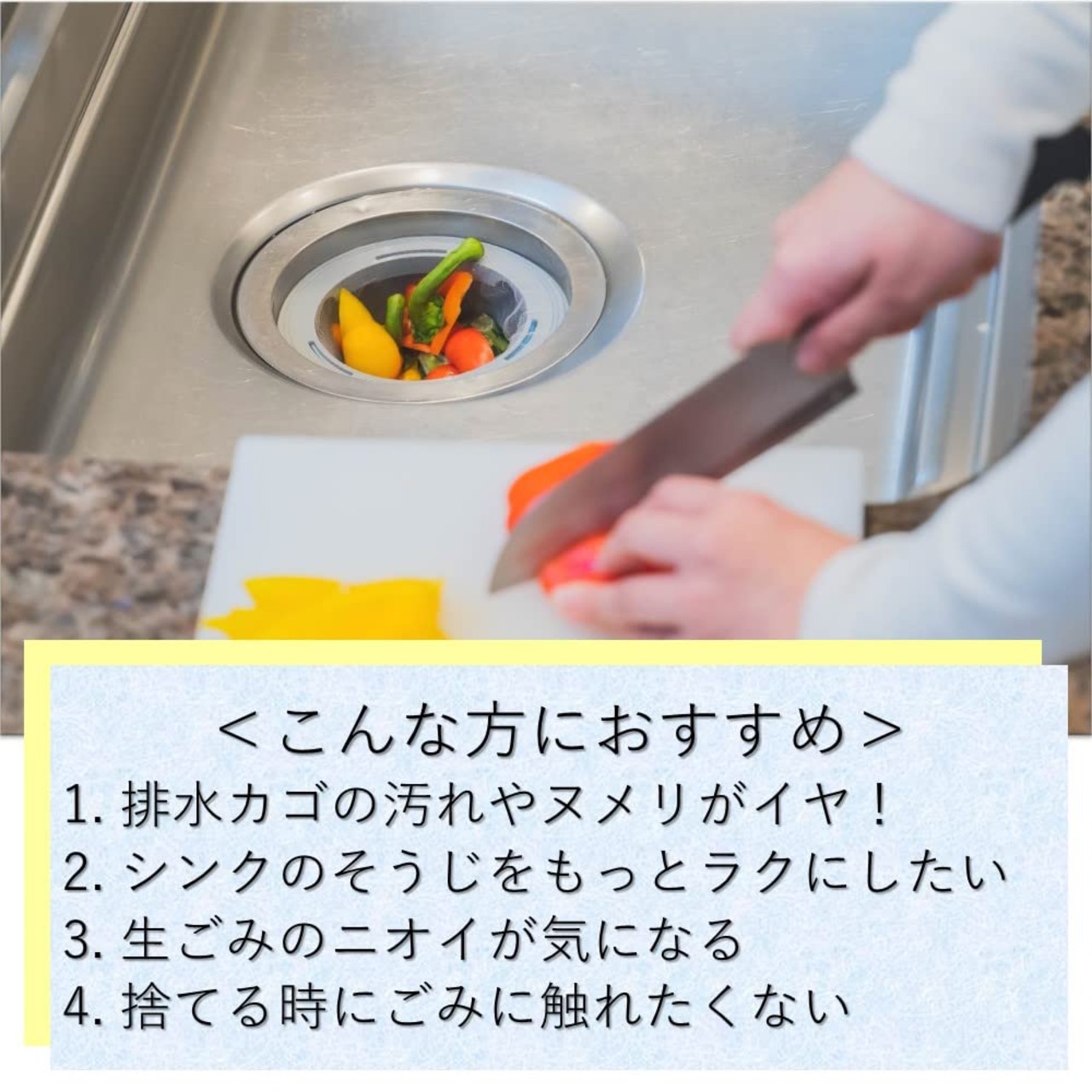 専用袋は水切れが良い穴あき袋で、細かなゴミはキャッチして逃がしません。 袋は耳つきで簡単に結んで捨てられます